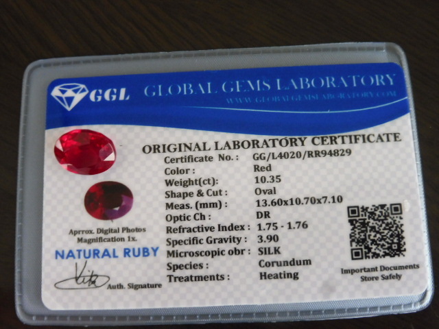 鑑別付 pigeon's blood ルビー 約10.35ct ルース 裸石 リングやペンダントに!