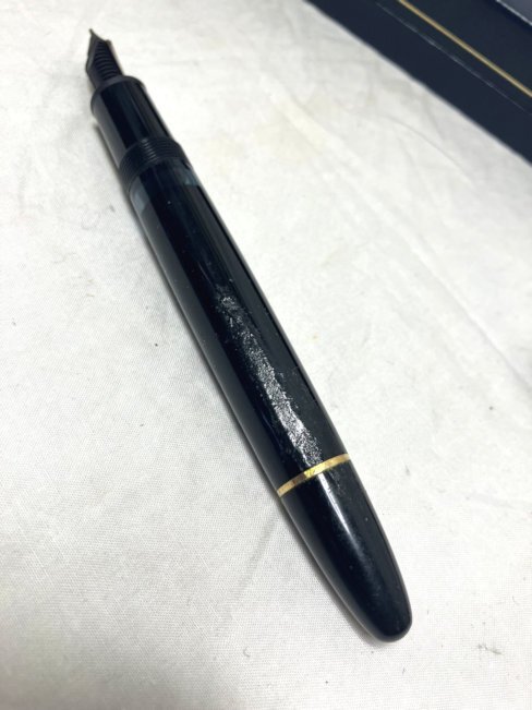 | ■■商品詳細■■ メーカー : MONTBLANC/ モンブラン 品名 : 万年筆 ※掲載写真は蛍光灯等の光の反射により、多少色の違いがある場合が御座います。 【商品説明】 こちらの商品は”中古品”で御座います。 ◆商品状態 ・・・使用に伴うスレ、キズやが御座います。 環境上、筆記は未確認となっております。 本体持ち手部分は一部溶けたような形跡が御座います。 14K刻印が御座います。ケースは別メーカーの物になります。 画像にてご確認の程お願い致します。 当店にてメンテナンスはお子なっておりません。 現状にてのお渡しとなります。 目視による特記する様な破損は御座いません。 記載事項をご確認、ご納得の上ご入札の程お願い致します。 ☆店頭でのお引取り大歓迎☆ 別途:この他にも“色々”出品しています 【ここクリック】でご覧下さいませ。 | ||