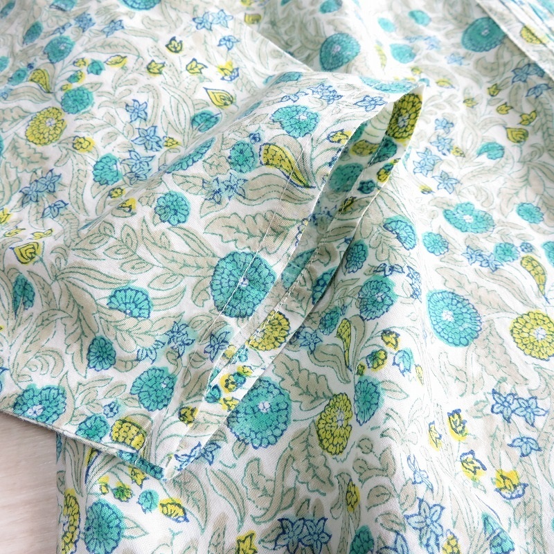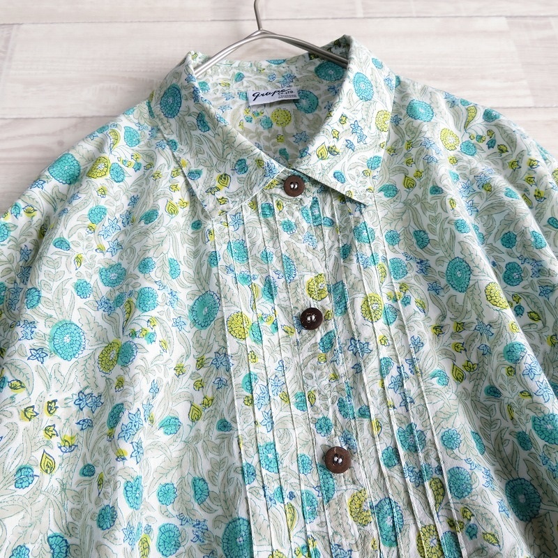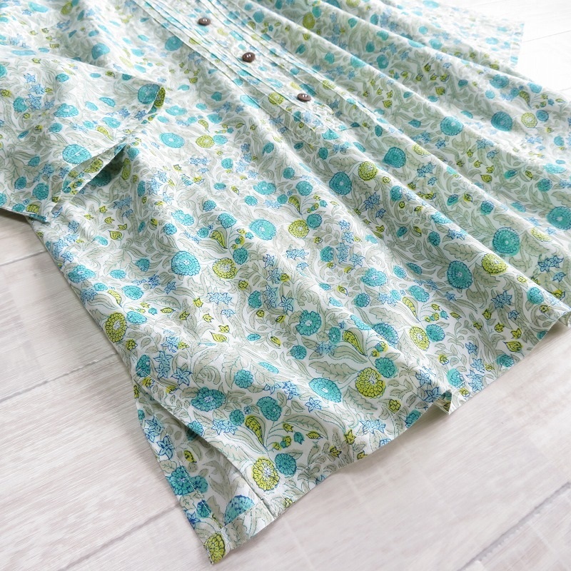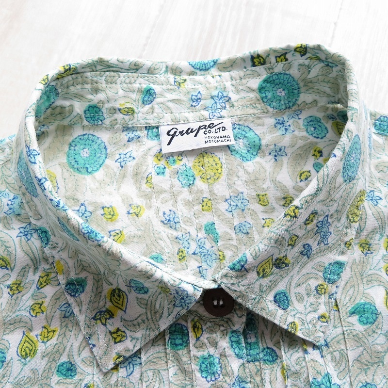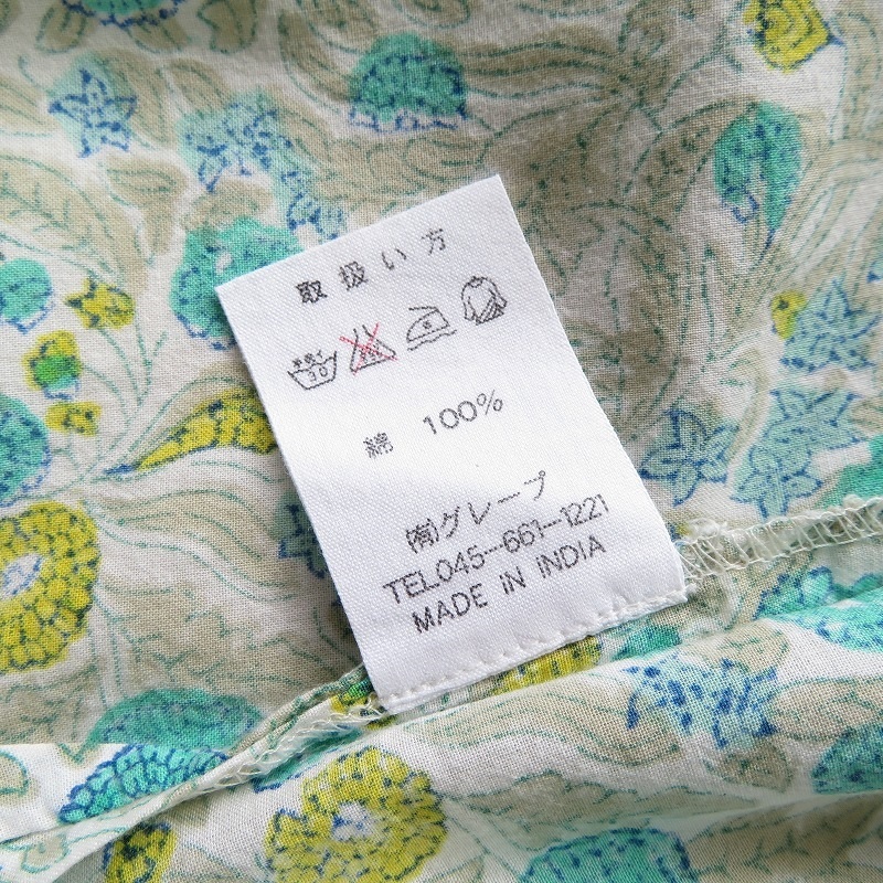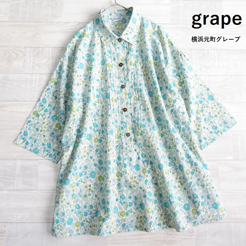 grape 横浜元町グレープ◆レディース コットンローン ボタニカル柄 ピンタック 7分袖 プルオーバー チュニック ブラウス*gr462