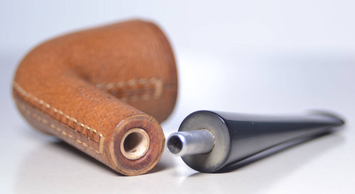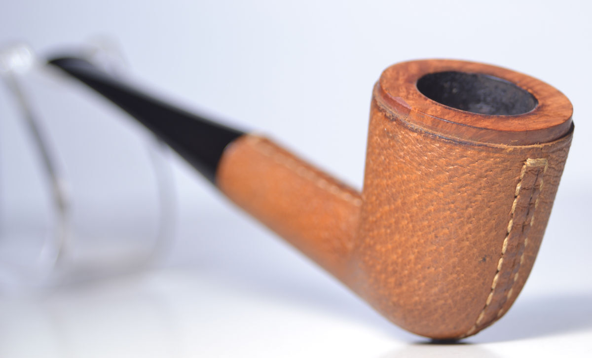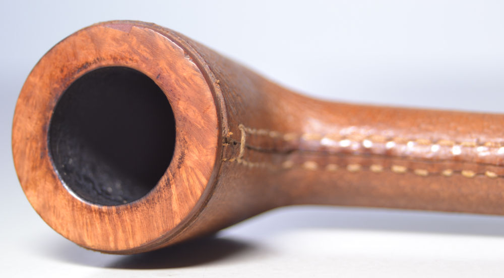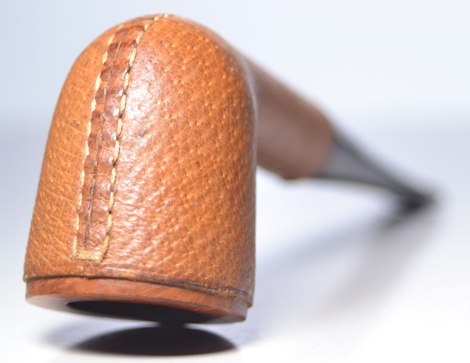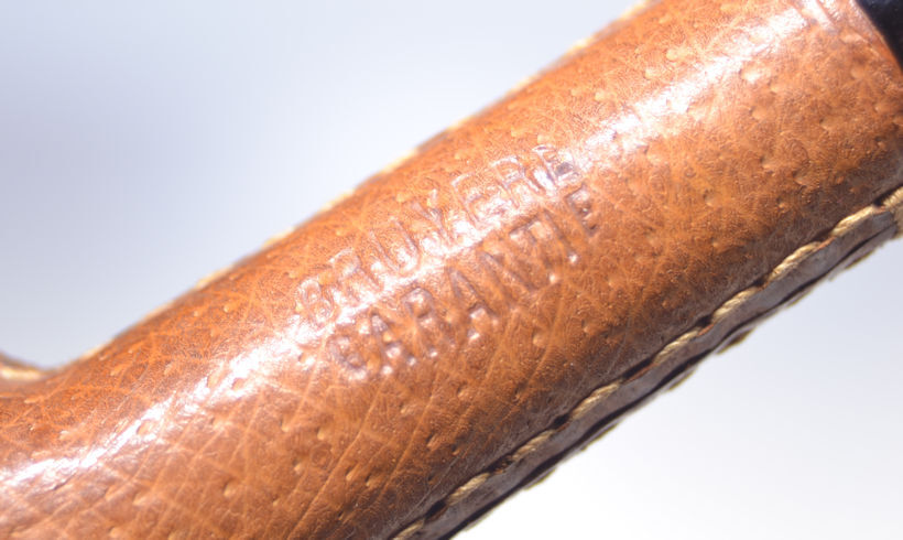 美色の革巻きが特徴的な、ヨーロッパ製のオールド・パイプです。シャンクに「Bruyere Garantie」の刻印があります。