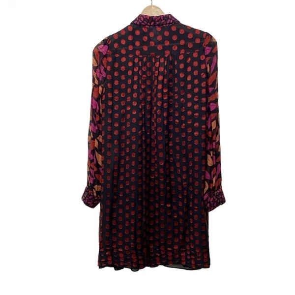 デザイン:レギュラーカラー/長袖/ひざ丈/シルク混/ドット柄/プリーツ/シャツワンピ