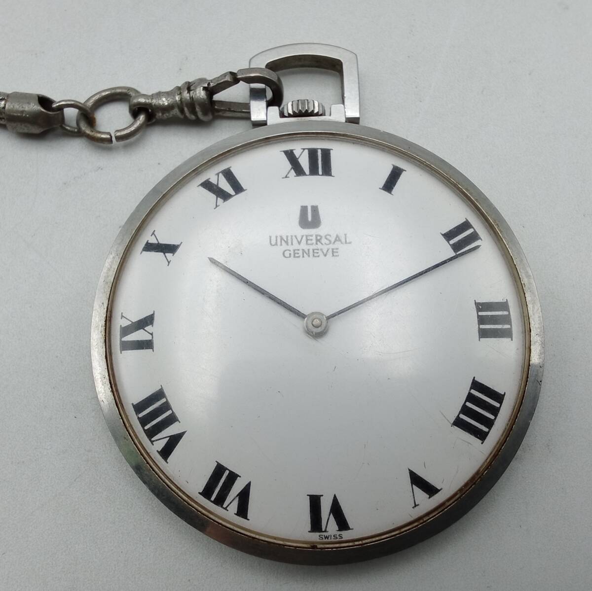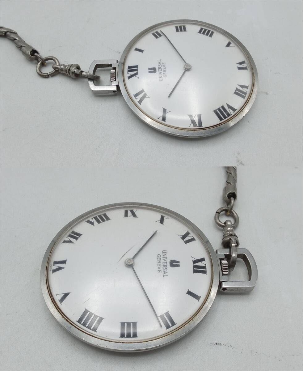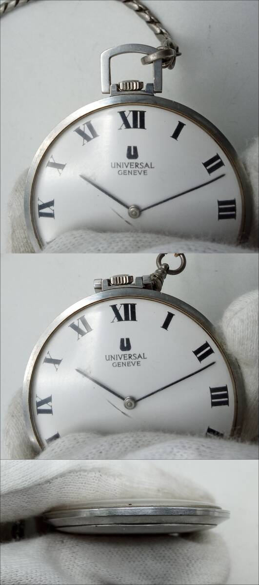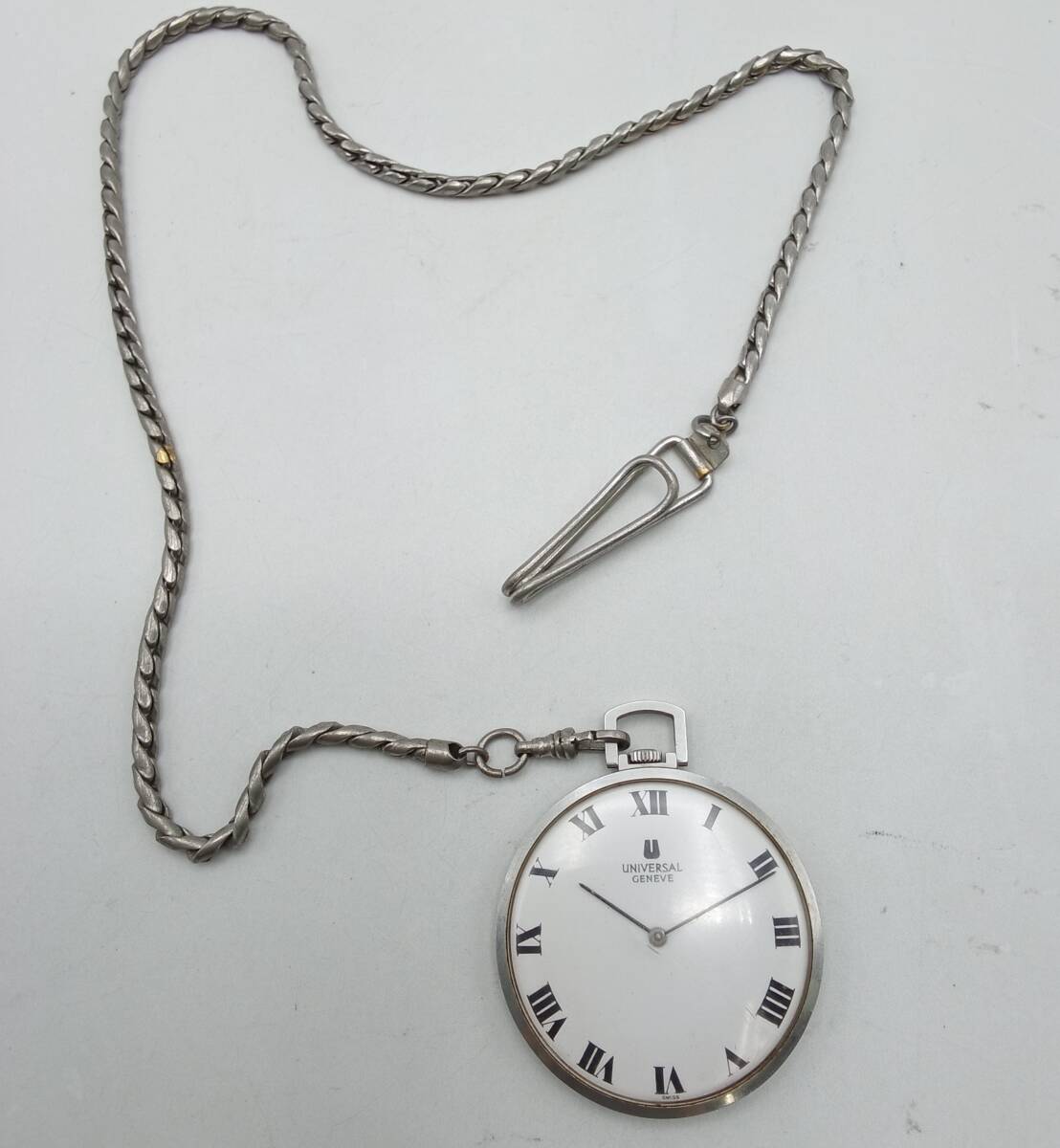 S93△【手巻き/稼働】懐中時計 UNIVERSAL GENEVE 856105 ユニバーサルジュネーブ 手巻き 2針 ホワイト文字盤 現状品