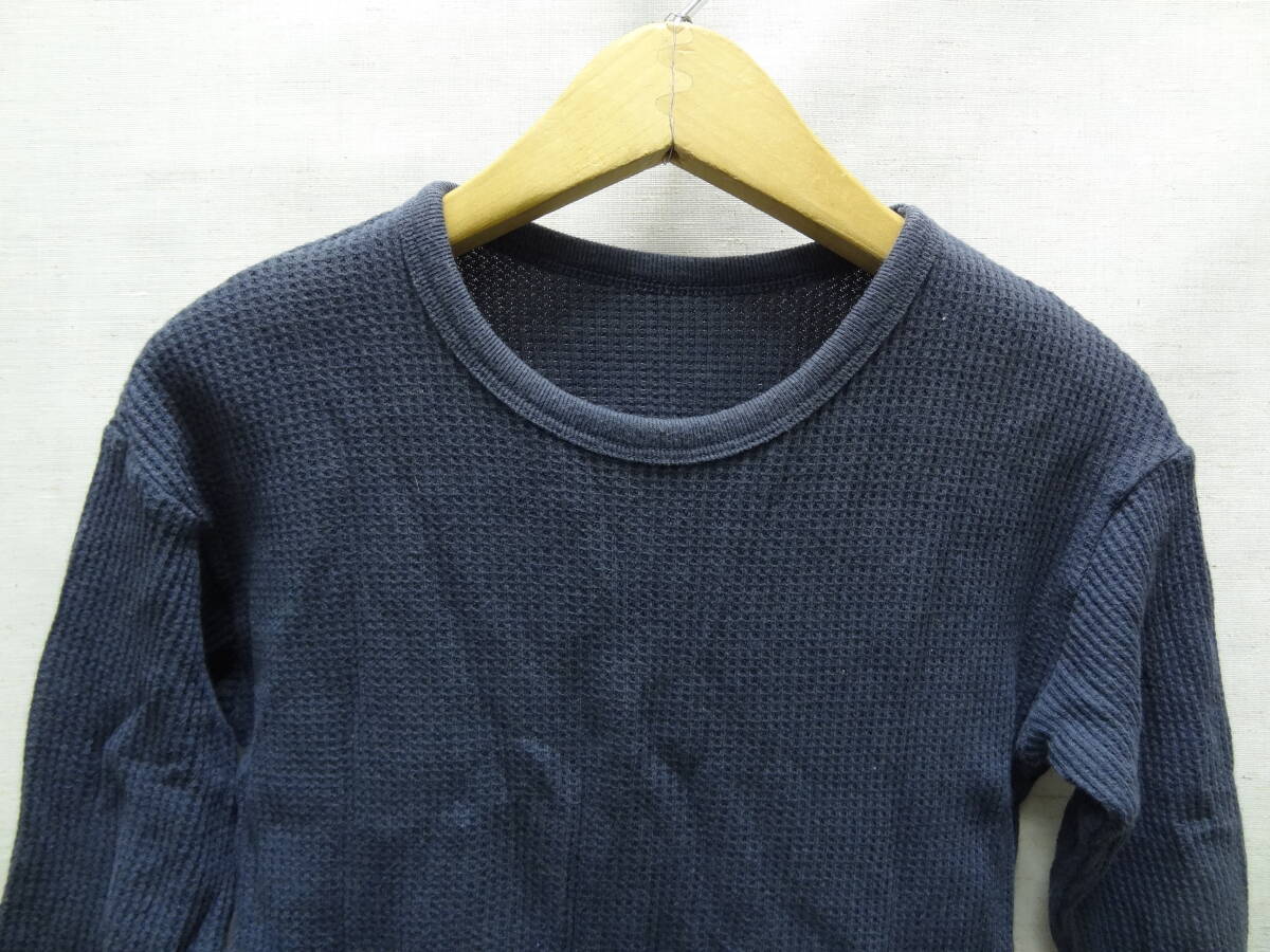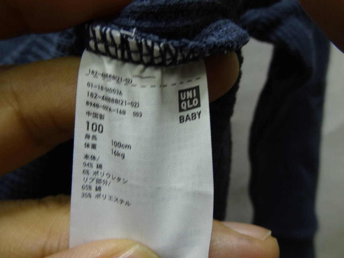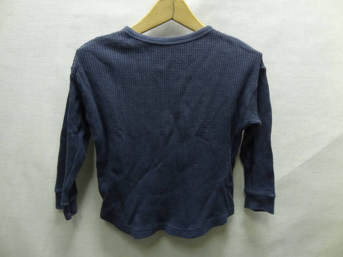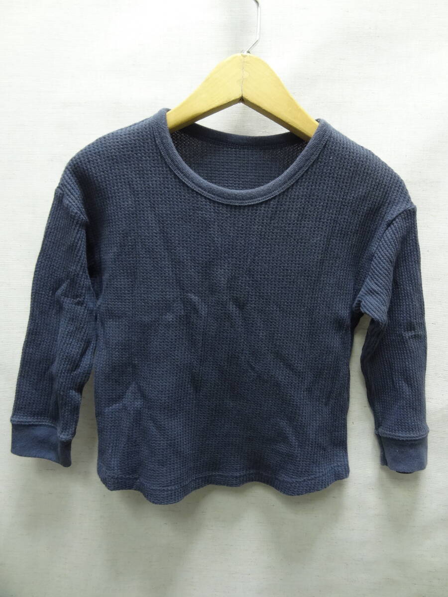 全国送料無料 ユニクロ UNIQLO 子供服キッズ男&女の子 紺 ネイビー色 ストレッチワッフル素材 L/S 長袖Tシャツ 100