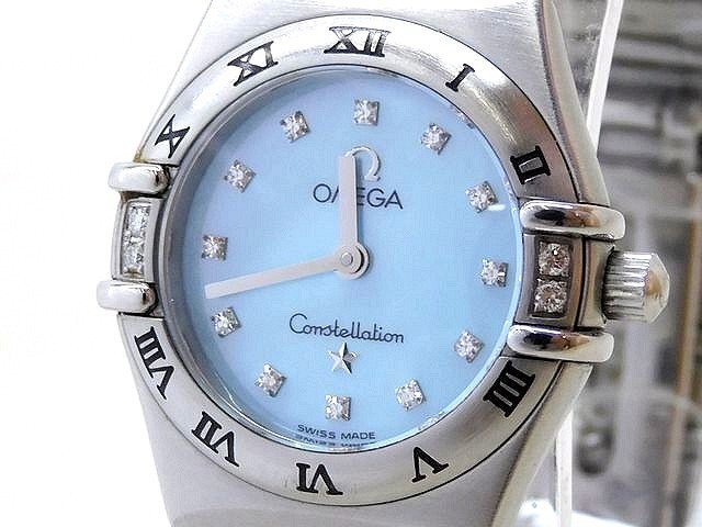 OMEGA オメガ コンステレーション ミニ 時計 ■ 895.1208 16Pダイヤ シェル文字盤 ステンレス レディース クォーツ 腕時計