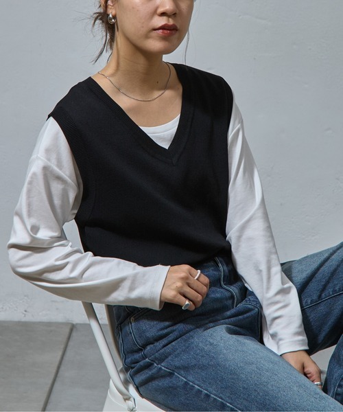 キーワード:ベスト ジレ レディース ノースリーブ 無地
