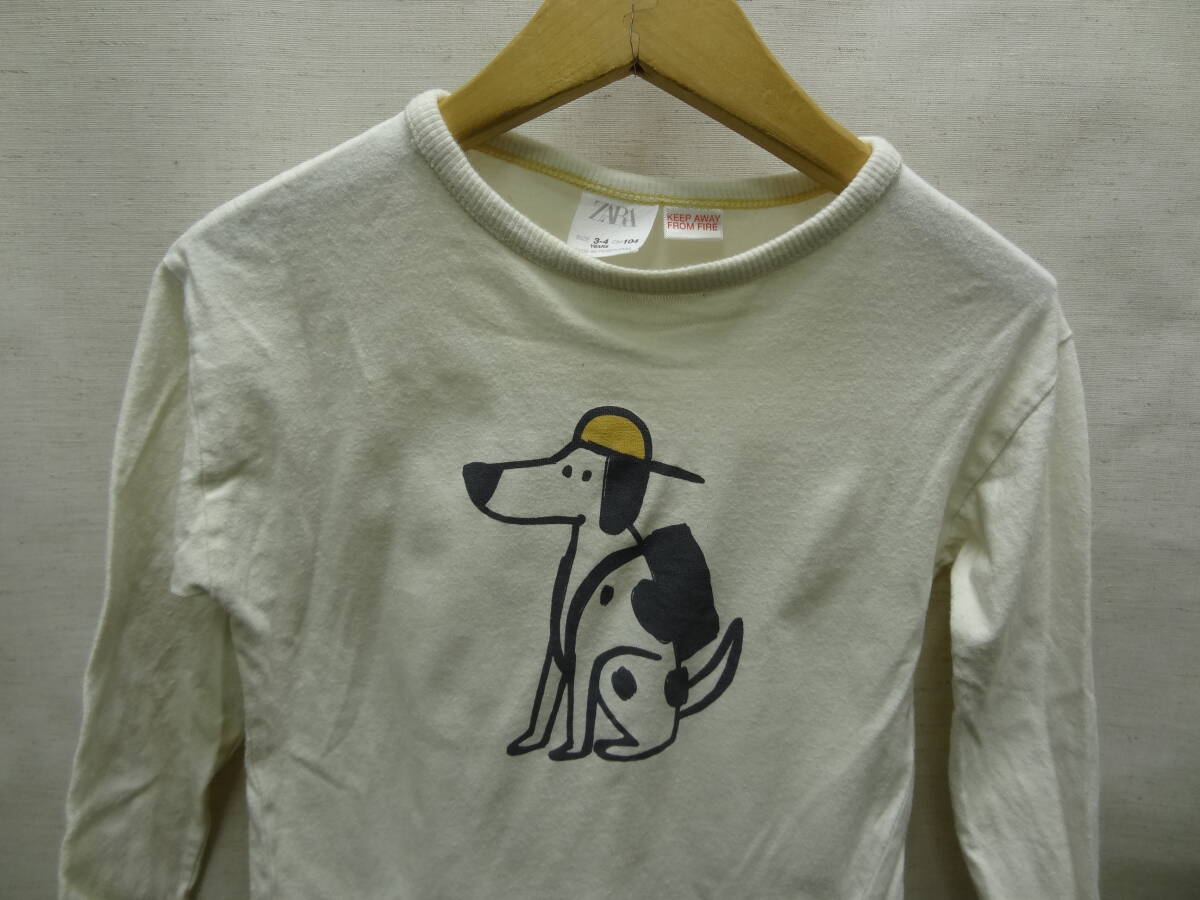 全国送料無料 ザラ ZARA 子供服キッズ男&女の子 帽子をかぶりリュックを背負った犬プリント 長袖Tシャツ 104(100/3-4)