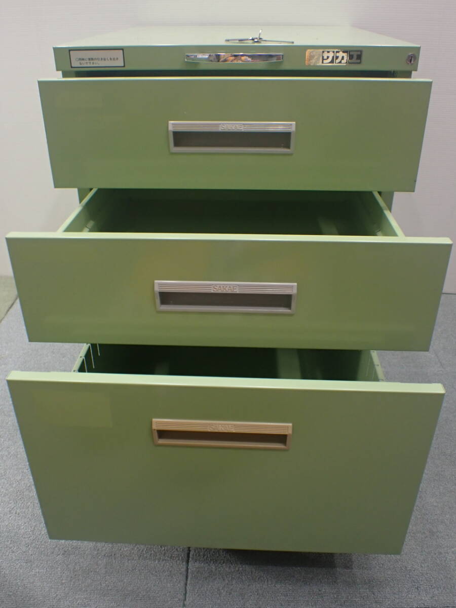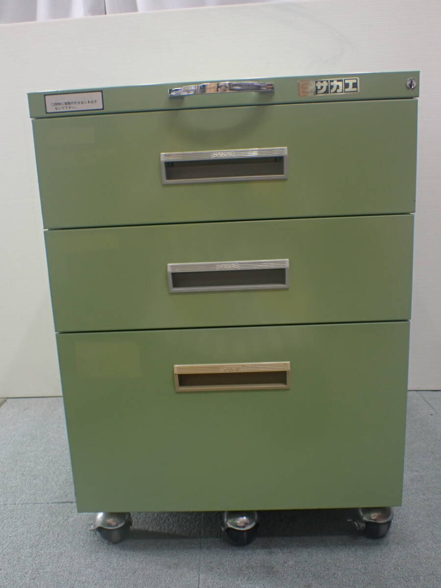 ①サカエ キャビネットワゴン NWシリーズ W455xD540xH630mm 鍵二本付き USED品