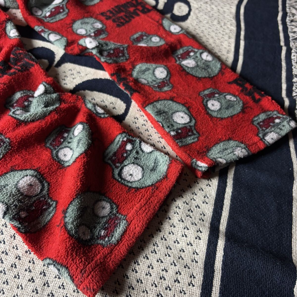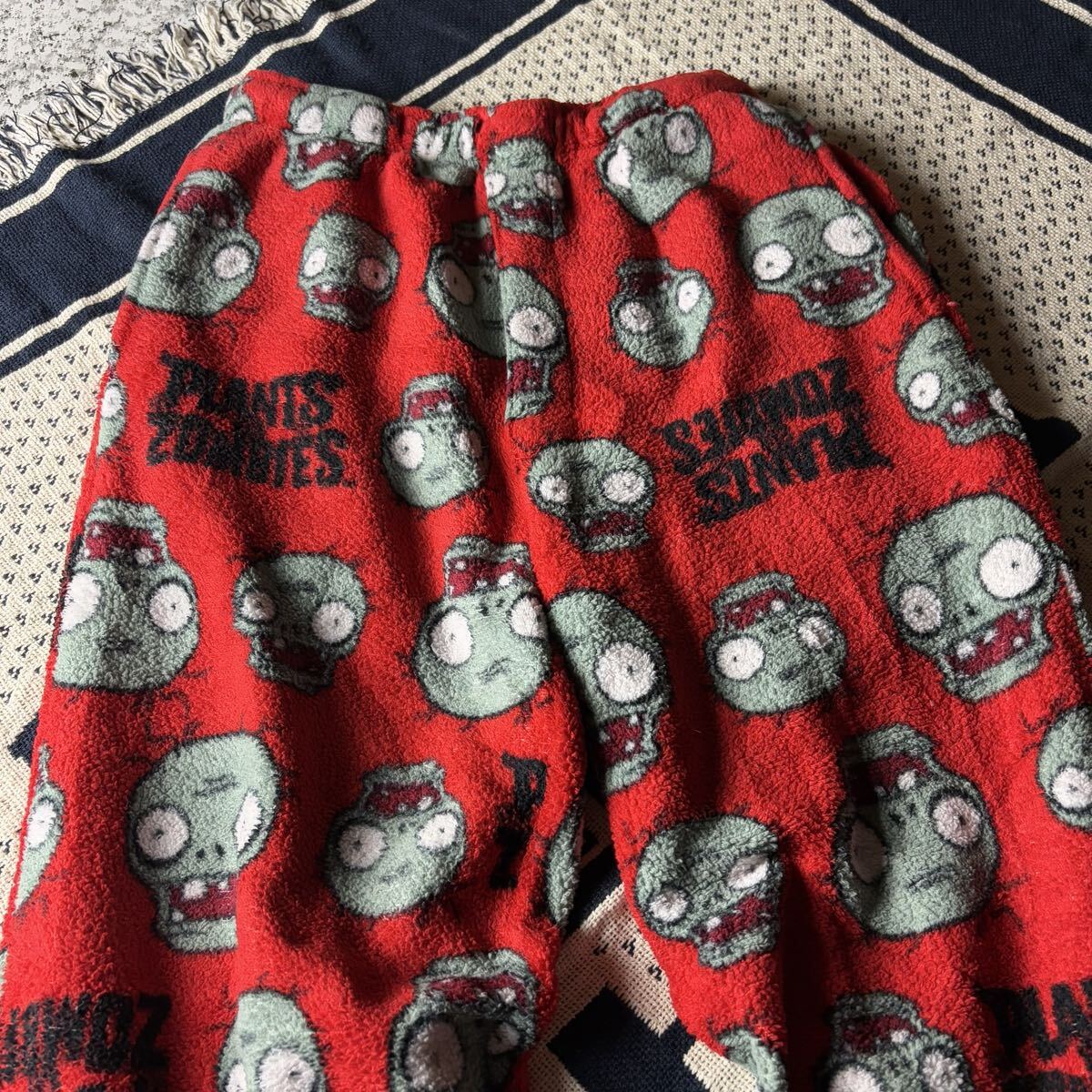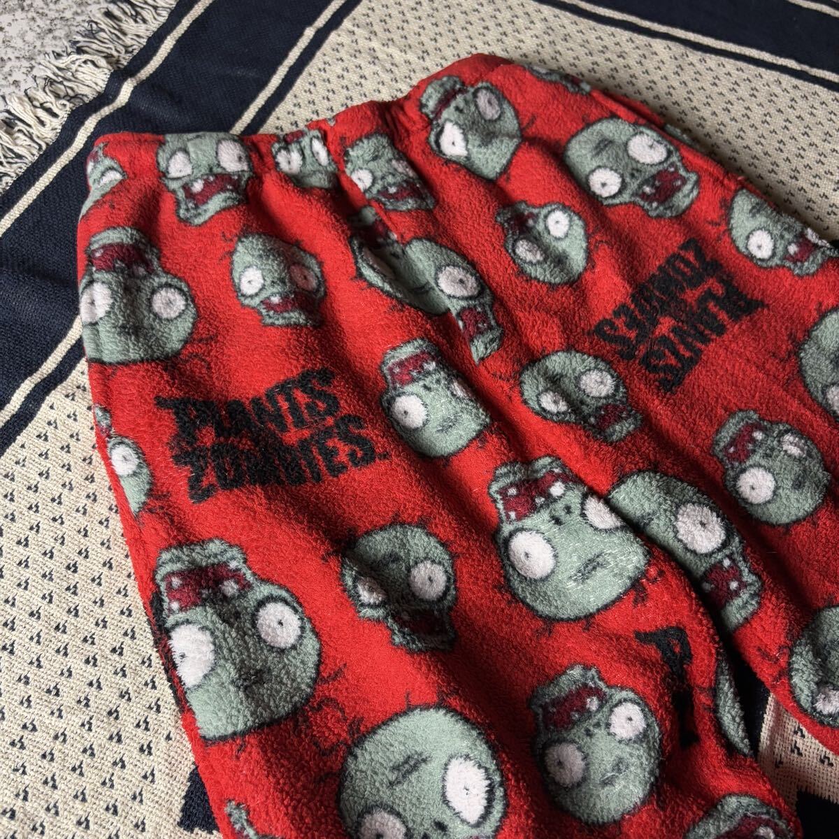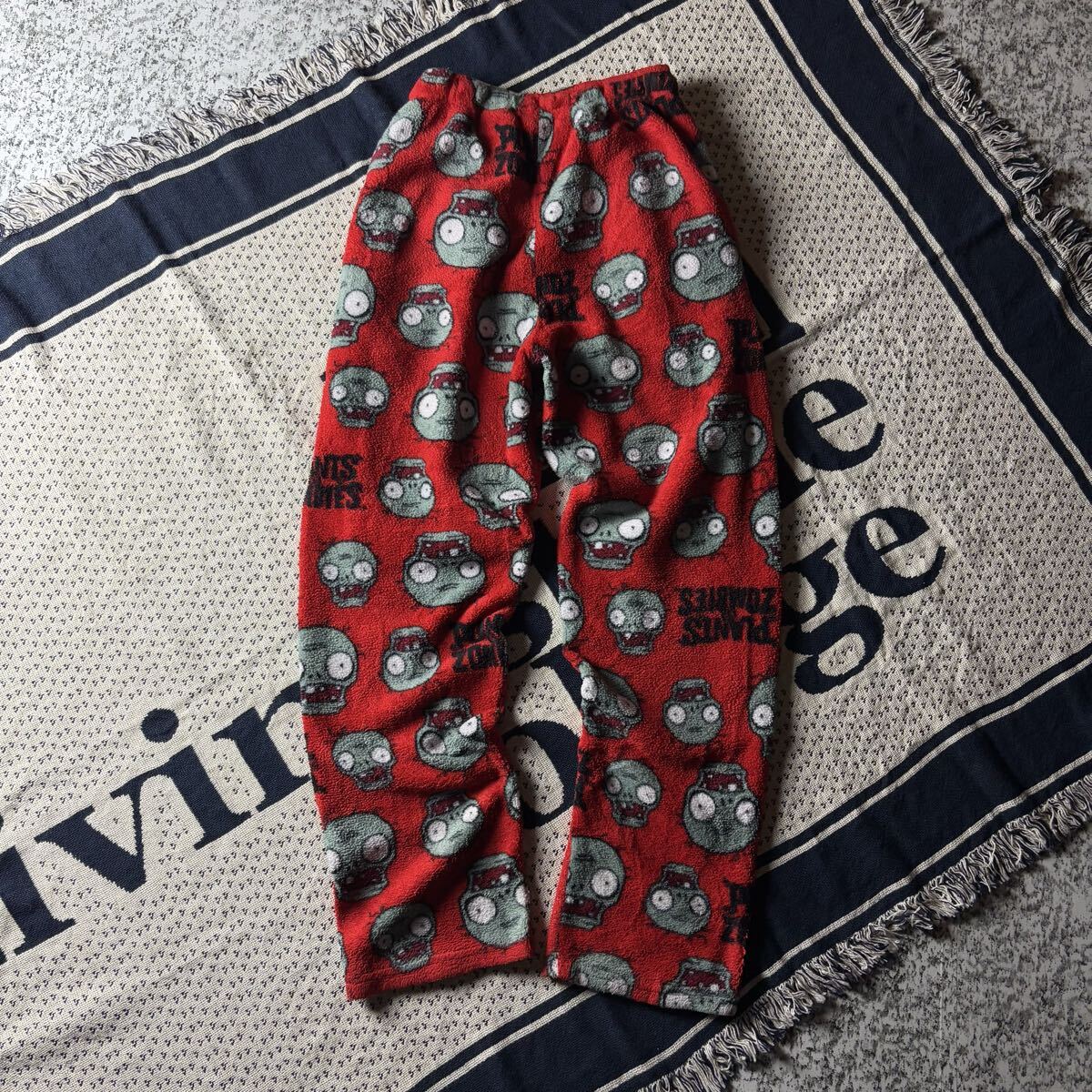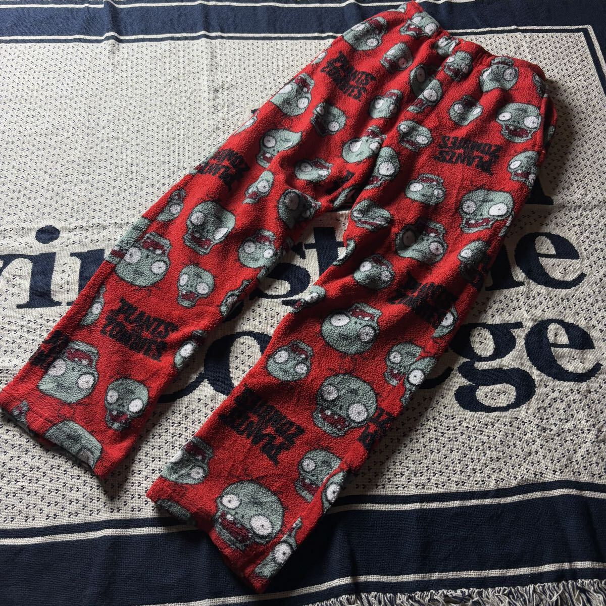【グッドレギュラー】プラントvsゾンビ ゲーム フリースイージーパンツ パジャマ レッド Sサイズ ホラー 古着 キャラクター