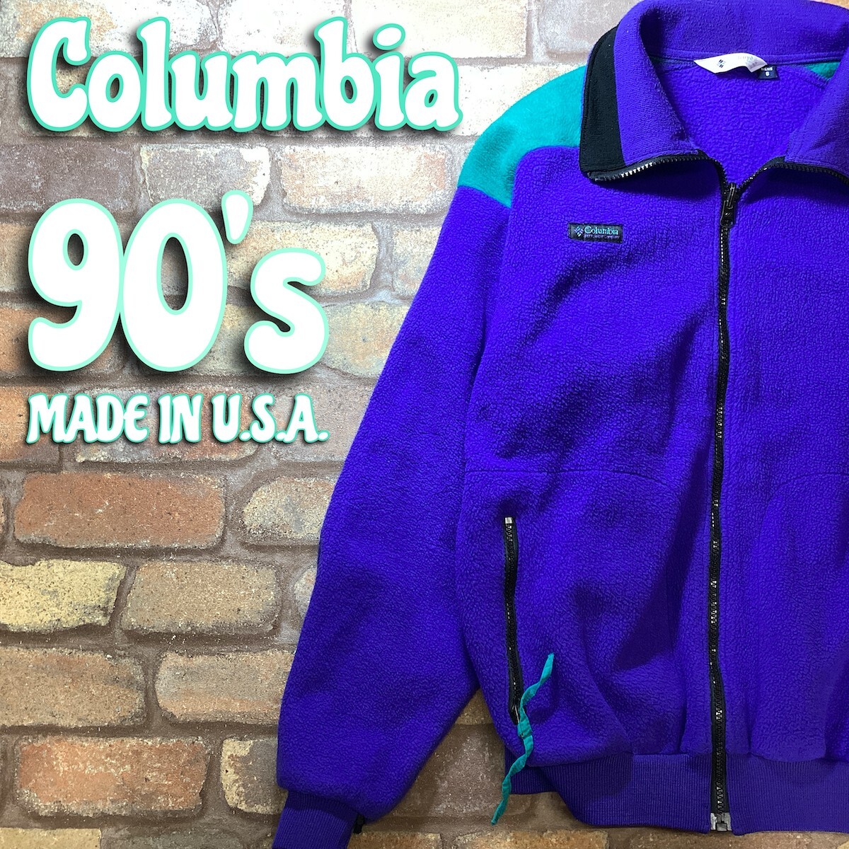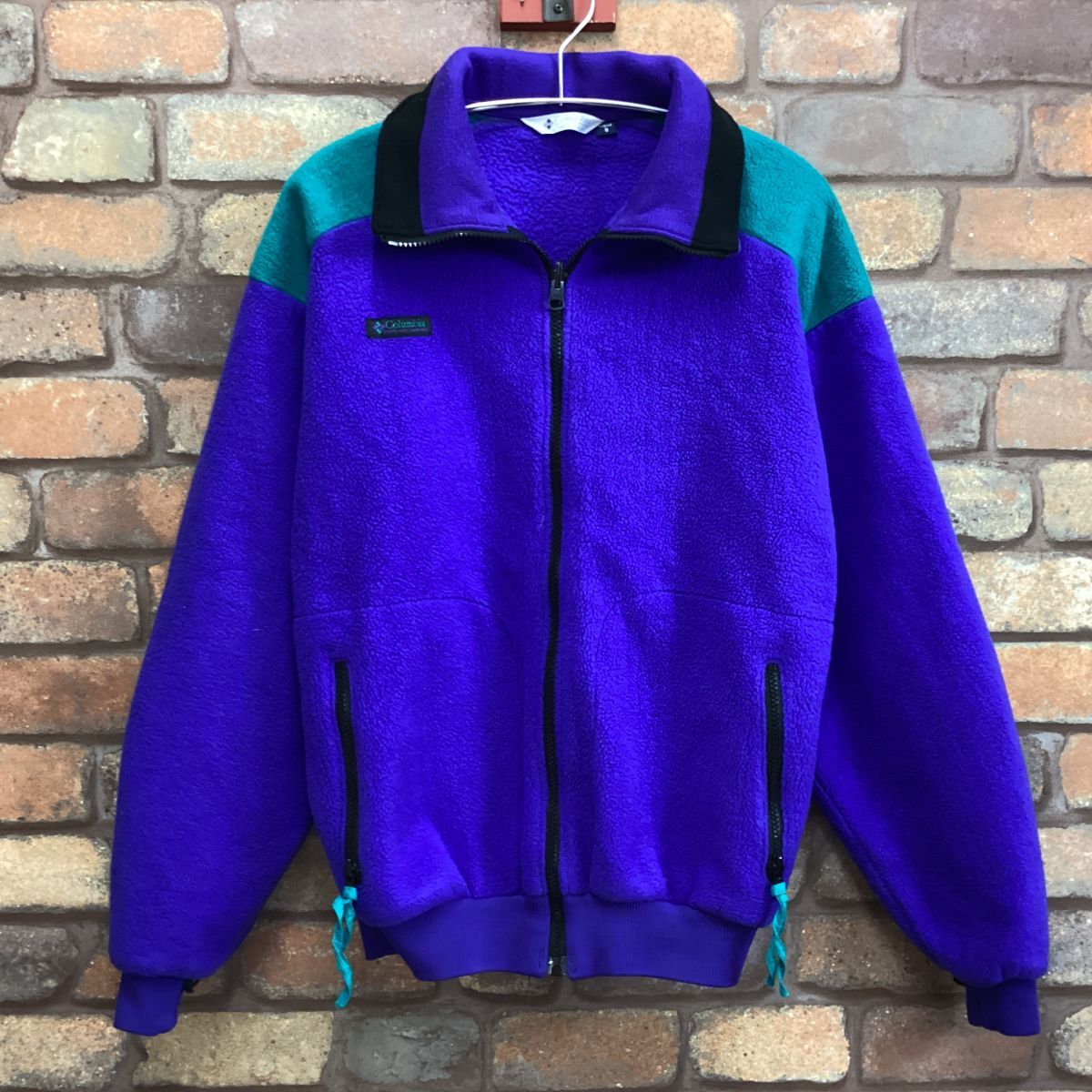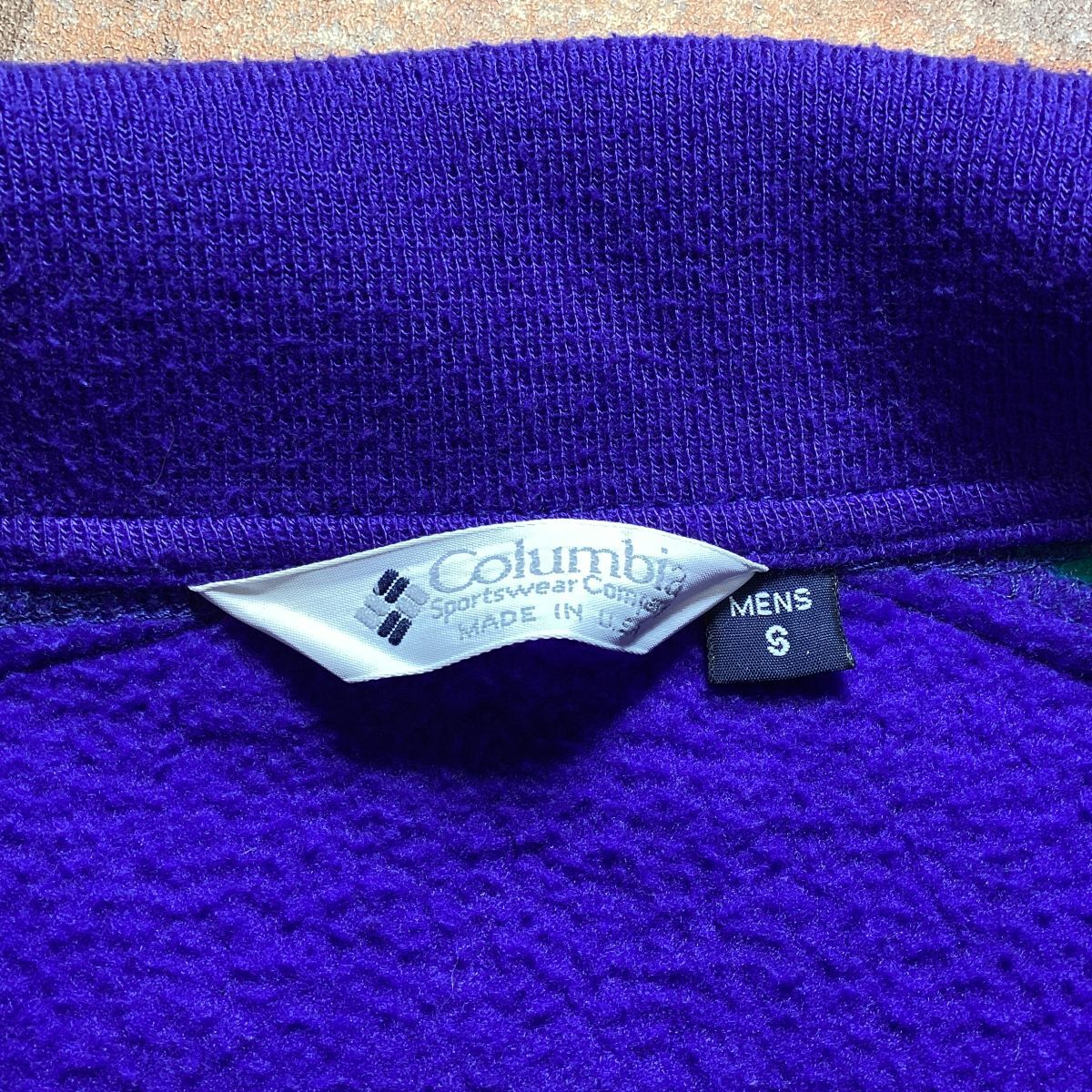 ★90’s USA製★vintage★正規品★【Columbia コロンビア】三角タグ フルジップ フリースジャケット【メンズ S】パープル グリーン LA1-103
