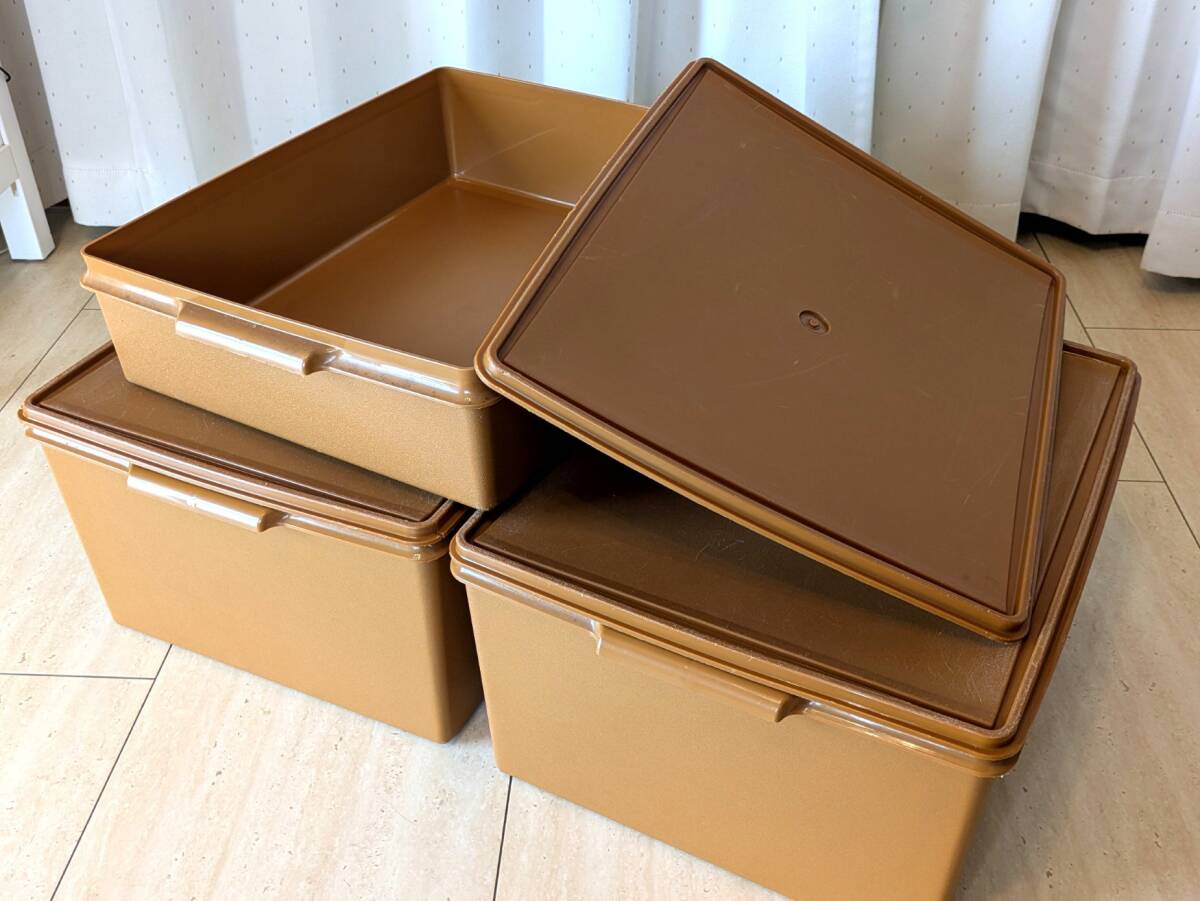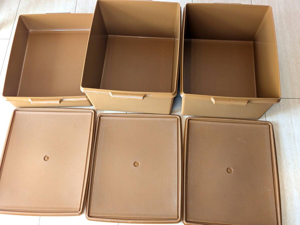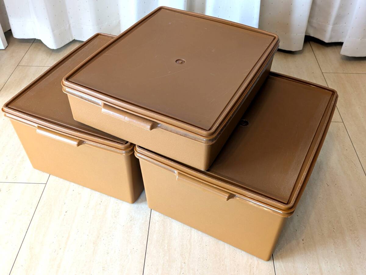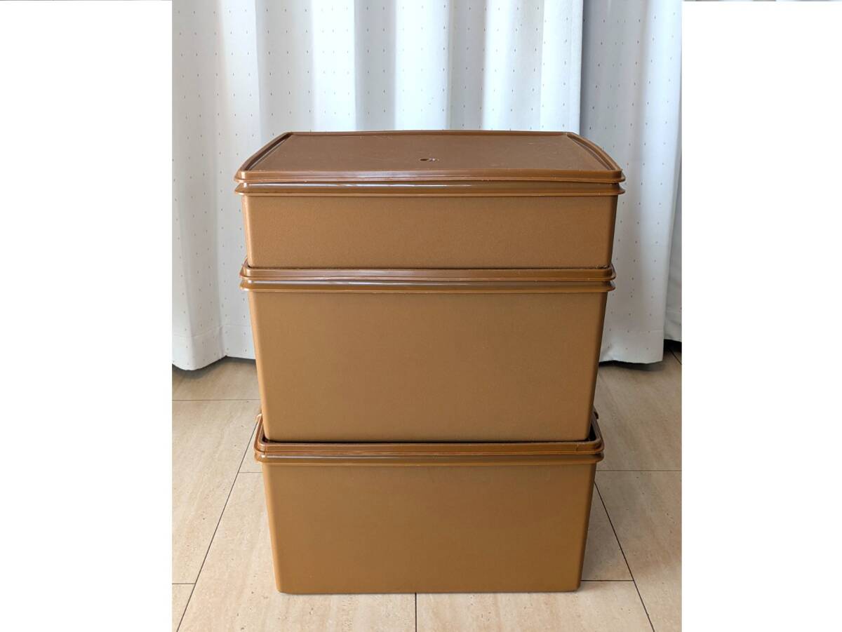 Й★TUPPERWARE タッパーウェア★衣装ケース★3個セット★スーパーケース★ブラウン茶色★収納ケース★37.5×45.5㎝★【訳あり商品】★
