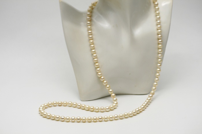 アコヤ真珠ホワイトカラーを連ねたロングネックレスです。 清楚で上品な白の輝きは、結婚式やパーティーなど華やかなシーンにぴったり。 サイズは7.5-8.0mm。 しっかりとした存在感がありながら、派手になりすぎず上品に映える絶妙な大きさです。 一連でさらりと着ければ気品ある印象に。 二重に重ねれば華やかでゴージャスに。 装いに合わせたアレンジが楽しめるのもロングネックレスの魅力です。 流行に左右されない王道のホワイトパールは、 一生もののフォーマルジュエリーとして長くご愛用いただけます。 | |