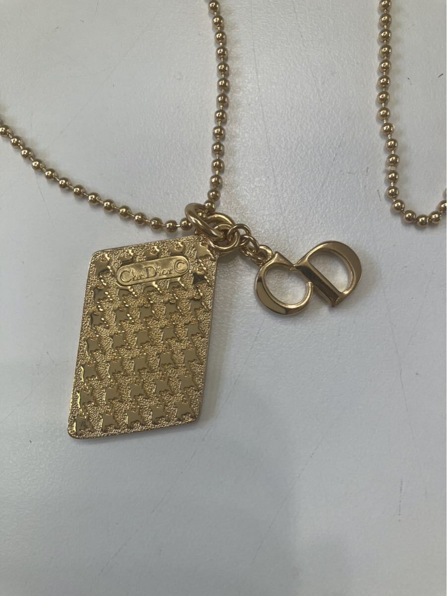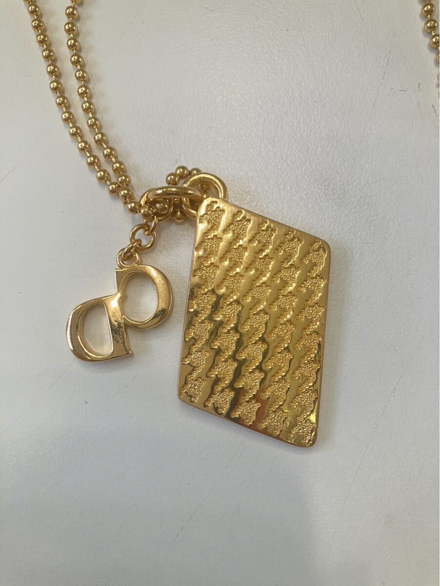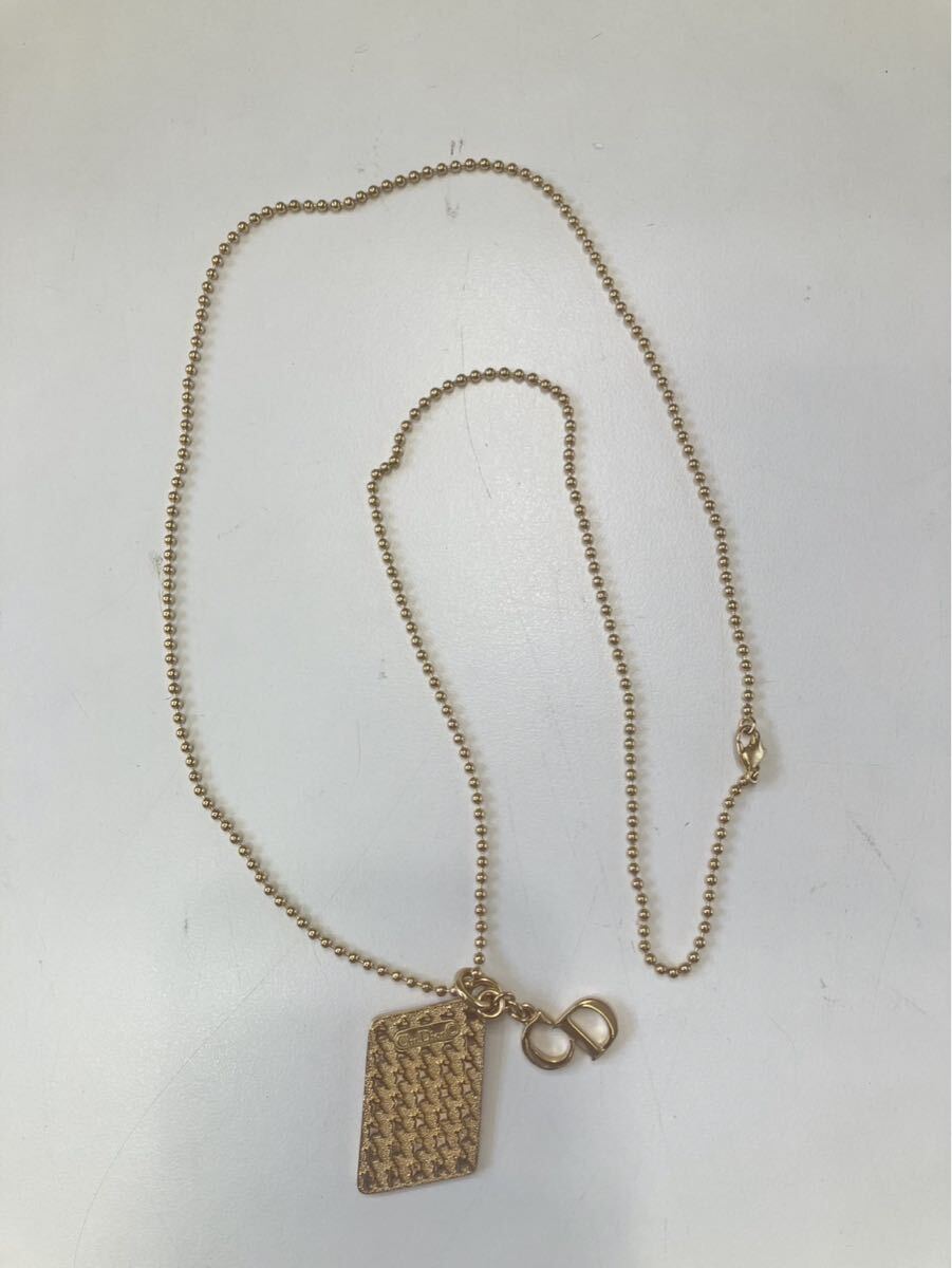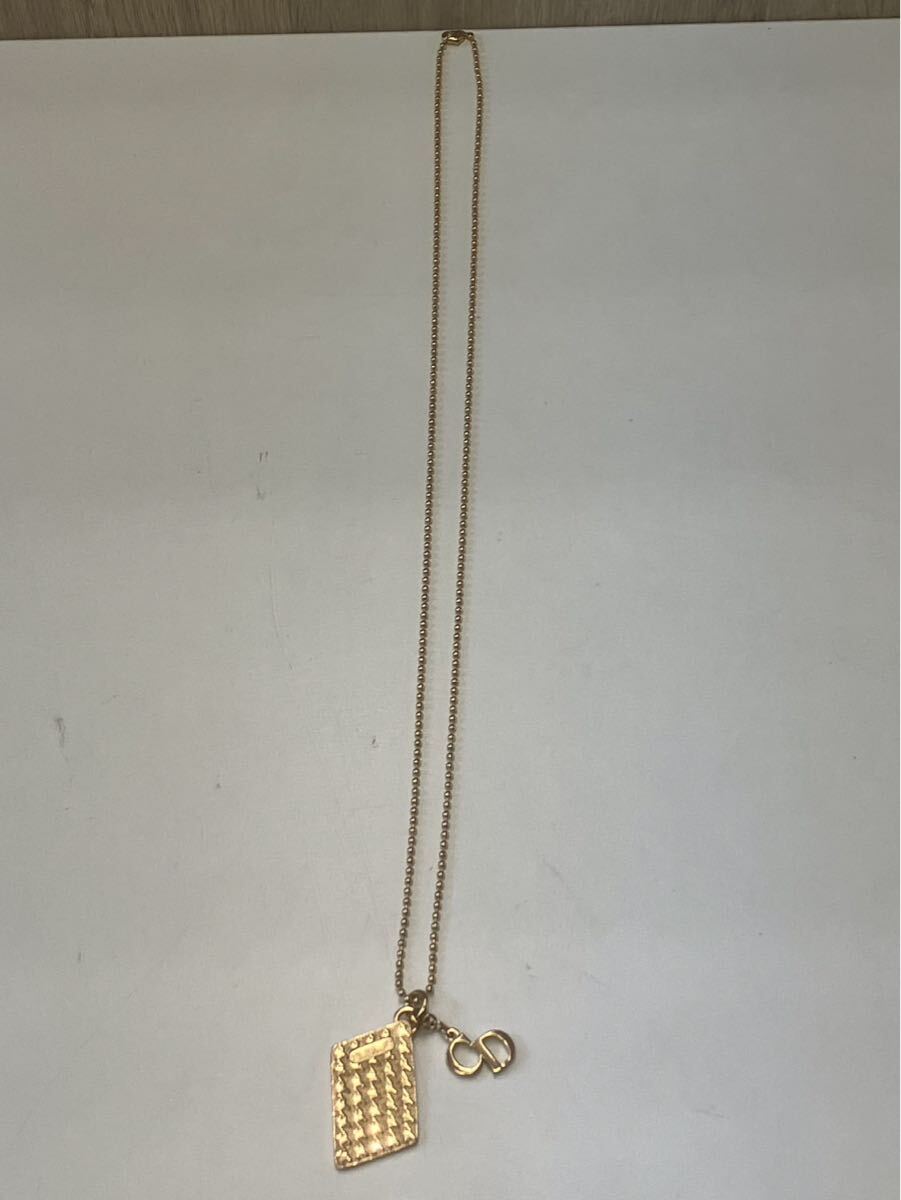 Christian Diorクリスチャンディオール Pre-Owned CDロゴ ネックレス ゴールド 千鳥格子プレート アクセサリー ファッション小物 現状品