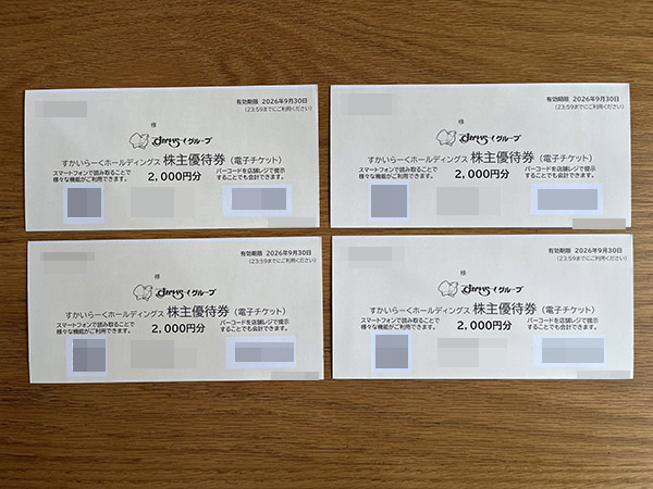 ■ すかいらーくグループ株主優待券 8,000円分(2,000円×4枚)円分です。