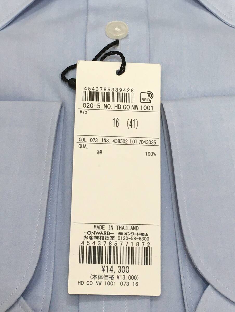 gotairiku 五大陸 PREMIUMPLEATS 長袖レギュラーシャツ 綿100% 41 L オンワード 定価14.300円