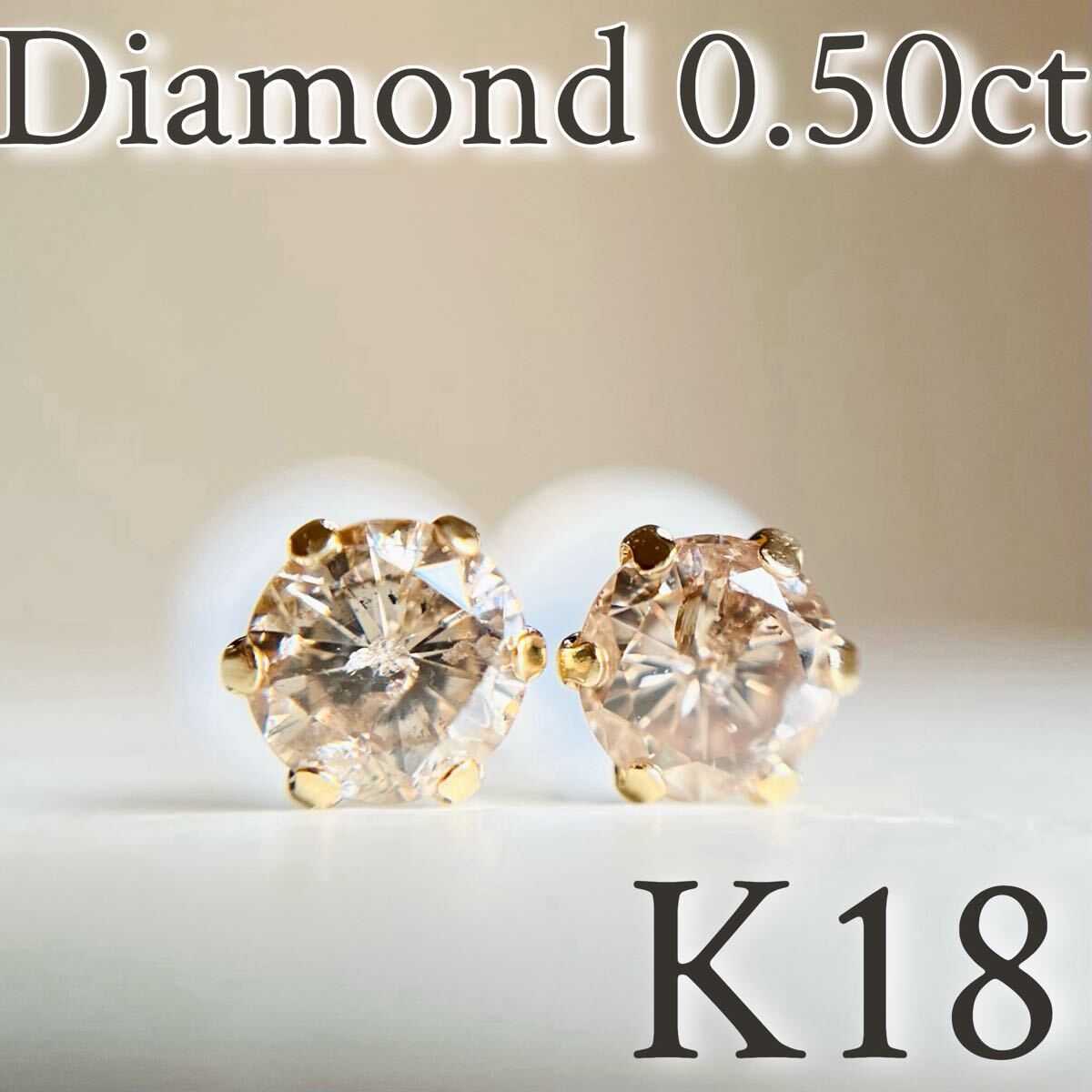 テリ輝きAA評価の天然ダイヤモンド片耳0.25カラット、計0.50カラット2石使用した人気定番の6本爪タイプのスタッドピアスです。
