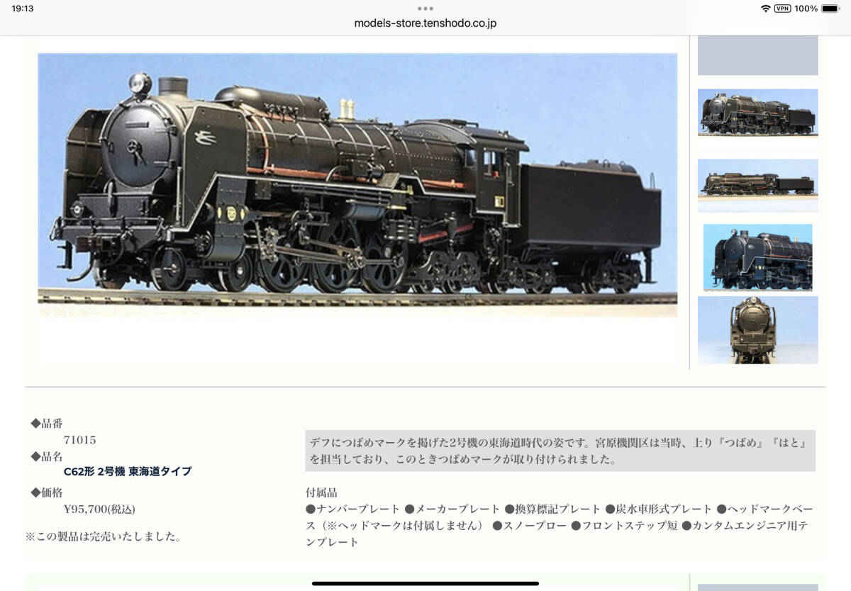 完全未開封品 天賞堂 71015 C62形 蒸気機関車 2号機 (上りつばめマーク) 東海道タイプ (カンタム搭載) + 79008 カンタン石炭02 + トレイン マーク(C62用) 保管品