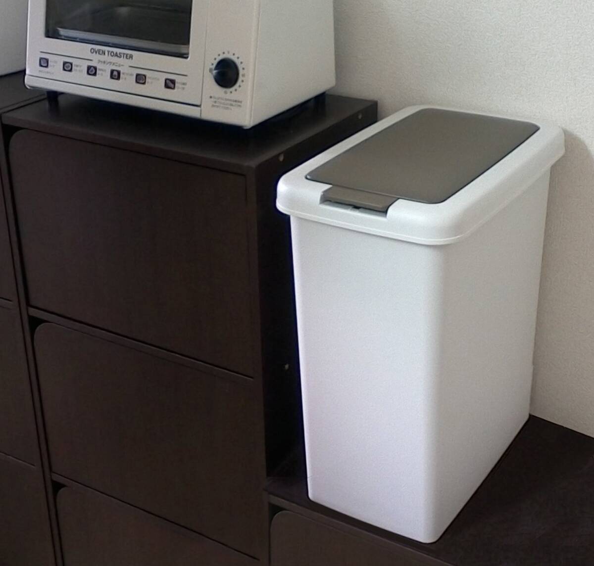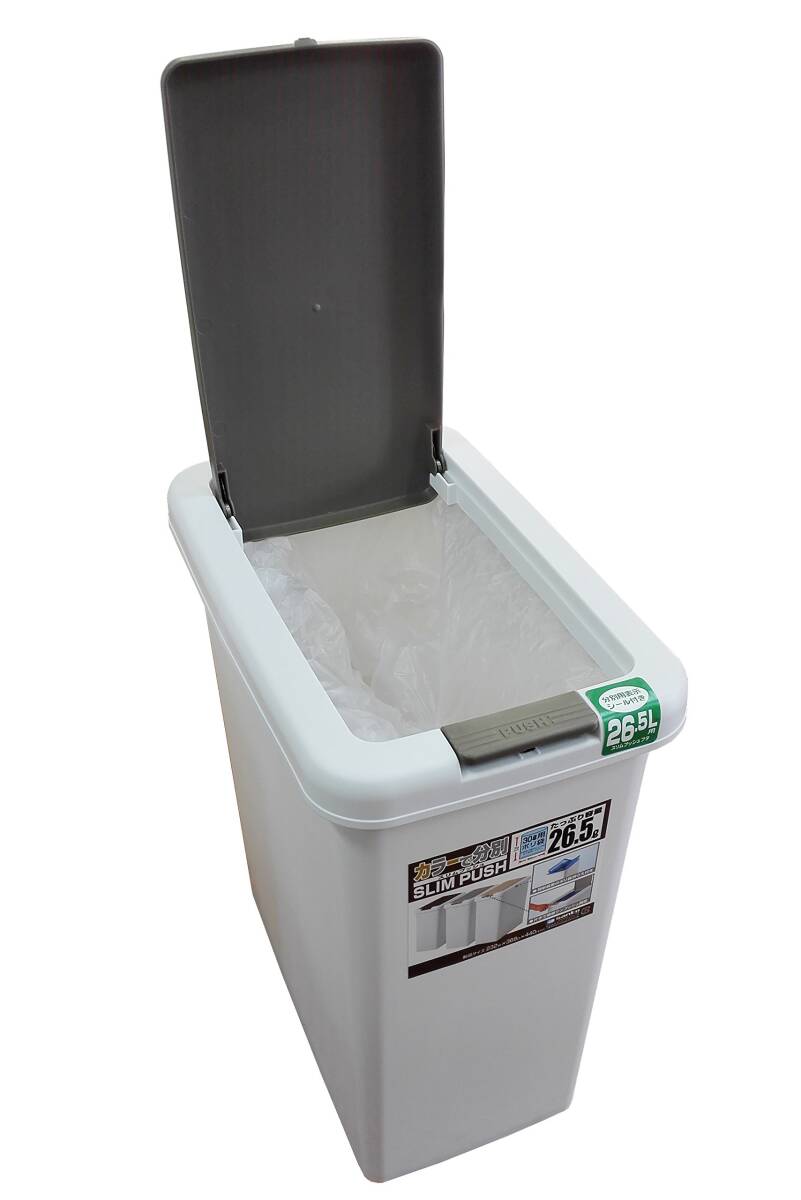 より ●ボタンを押してワンプッシュで開閉するゴミ箱 ●袋がセットしやすいポリ袋押さえ付き ●色違いを並べて配置すれば、分別がしやすいダストボックスに