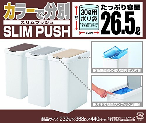 サンコープラスチック ゴミ箱 キッチン分別ワンプッシュ 26.5L ライトブラウン