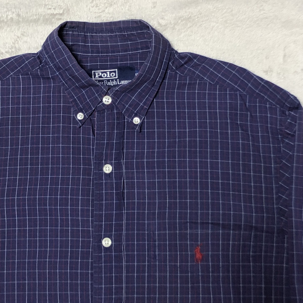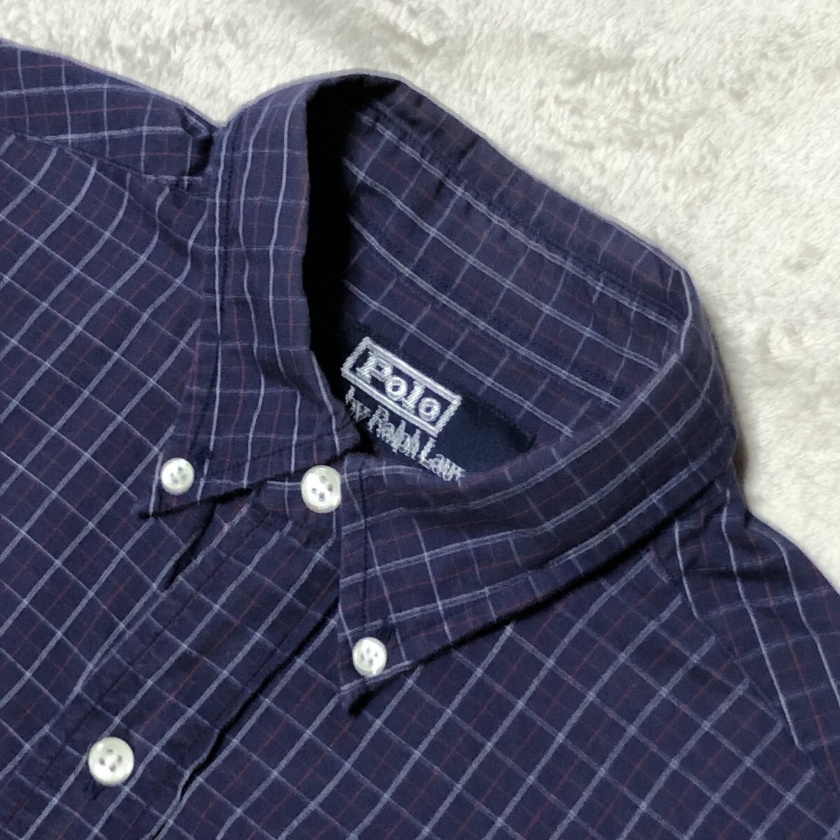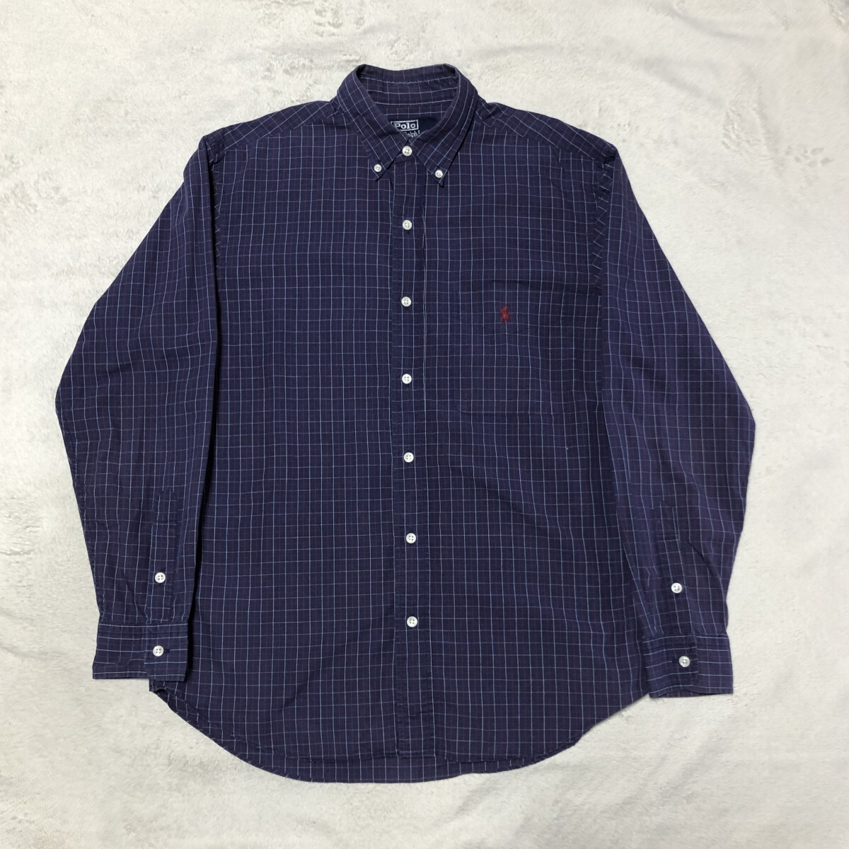 POLO BY RALPH LAUREN ポロ バイ ラルフローレン 長袖シャツ ボタンダウン ポニー刺 ネイビー系 ウィンドペンチェック Mサイズ相当