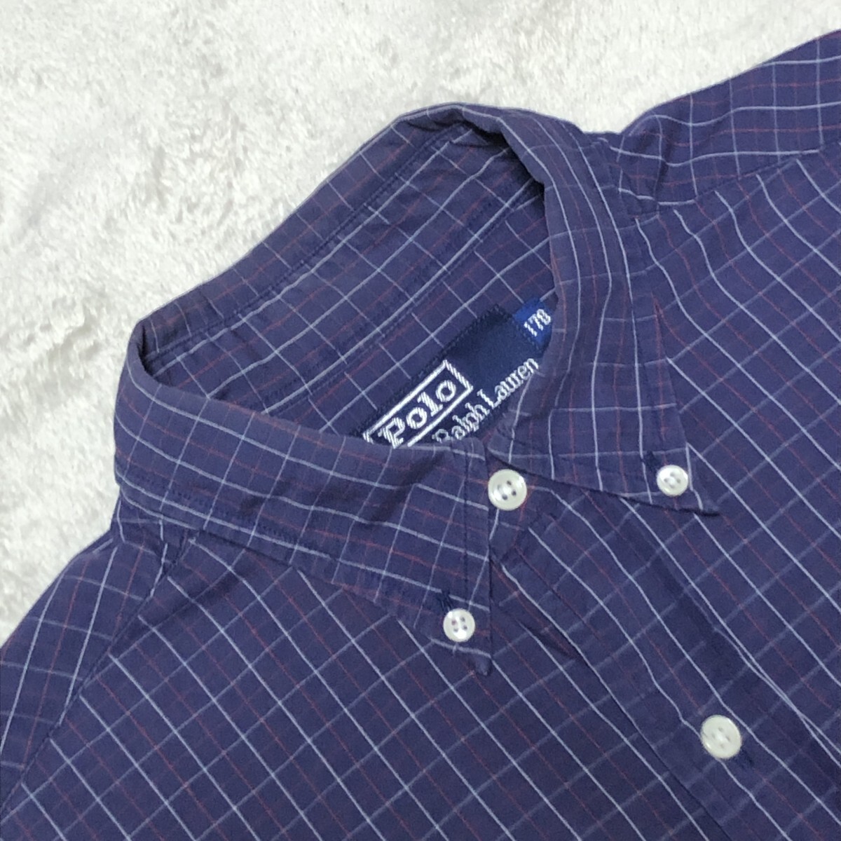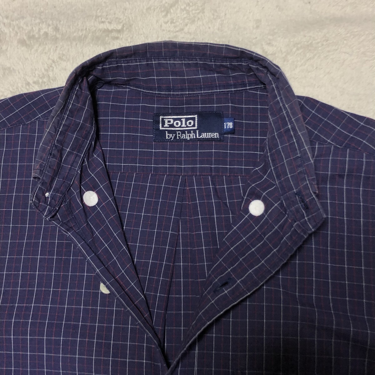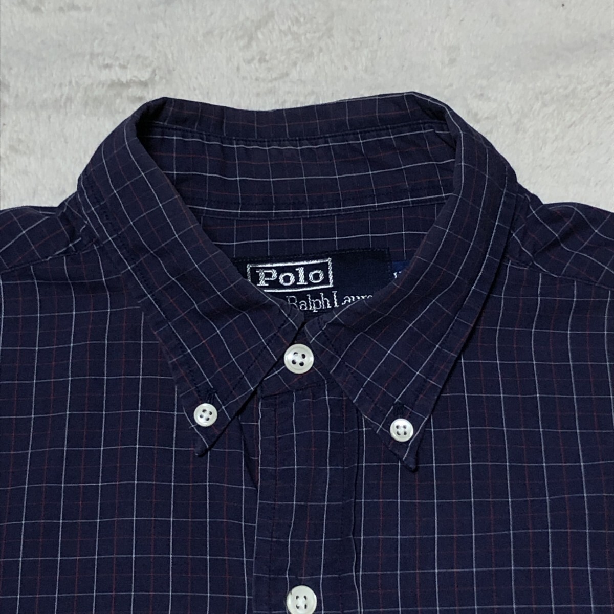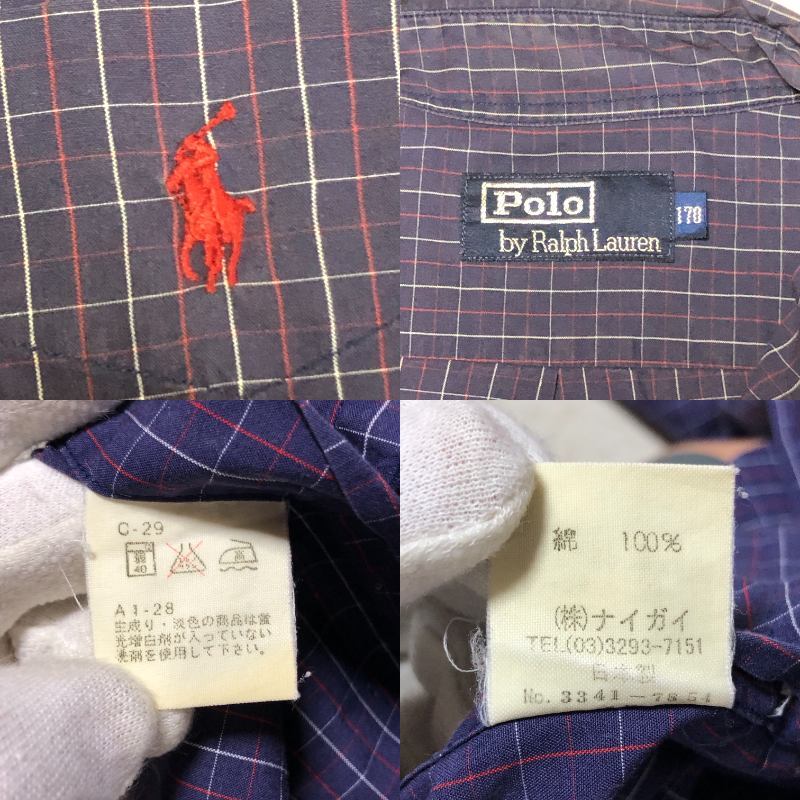 POLO BY RALPH LAUREN ポロ バイ ラルフローレン 長袖シャツ ボタンダウン ポニー刺 ネイビー系 ウィンドペンチェック Mサイズ相当