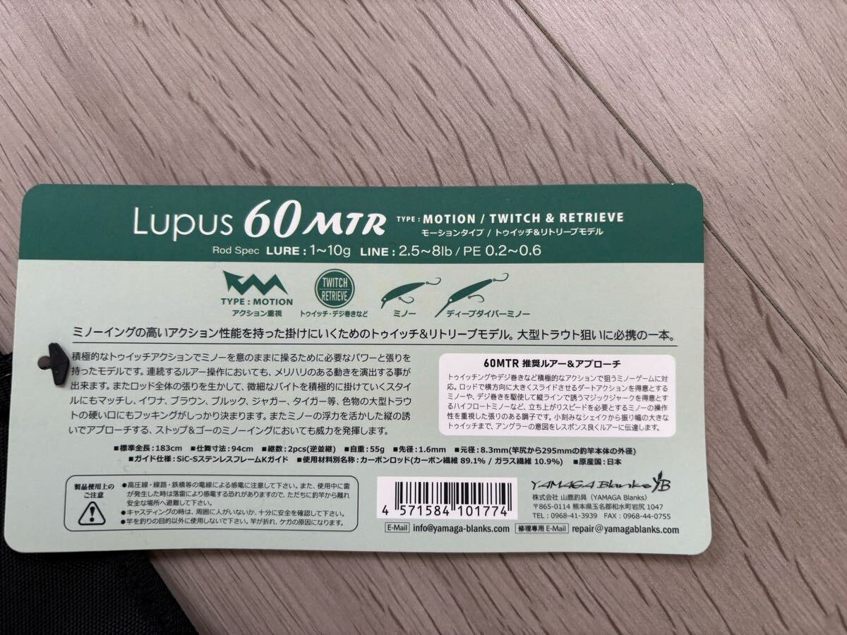 YAMAGA BLANKS Lupus for Area Trout 60MTR