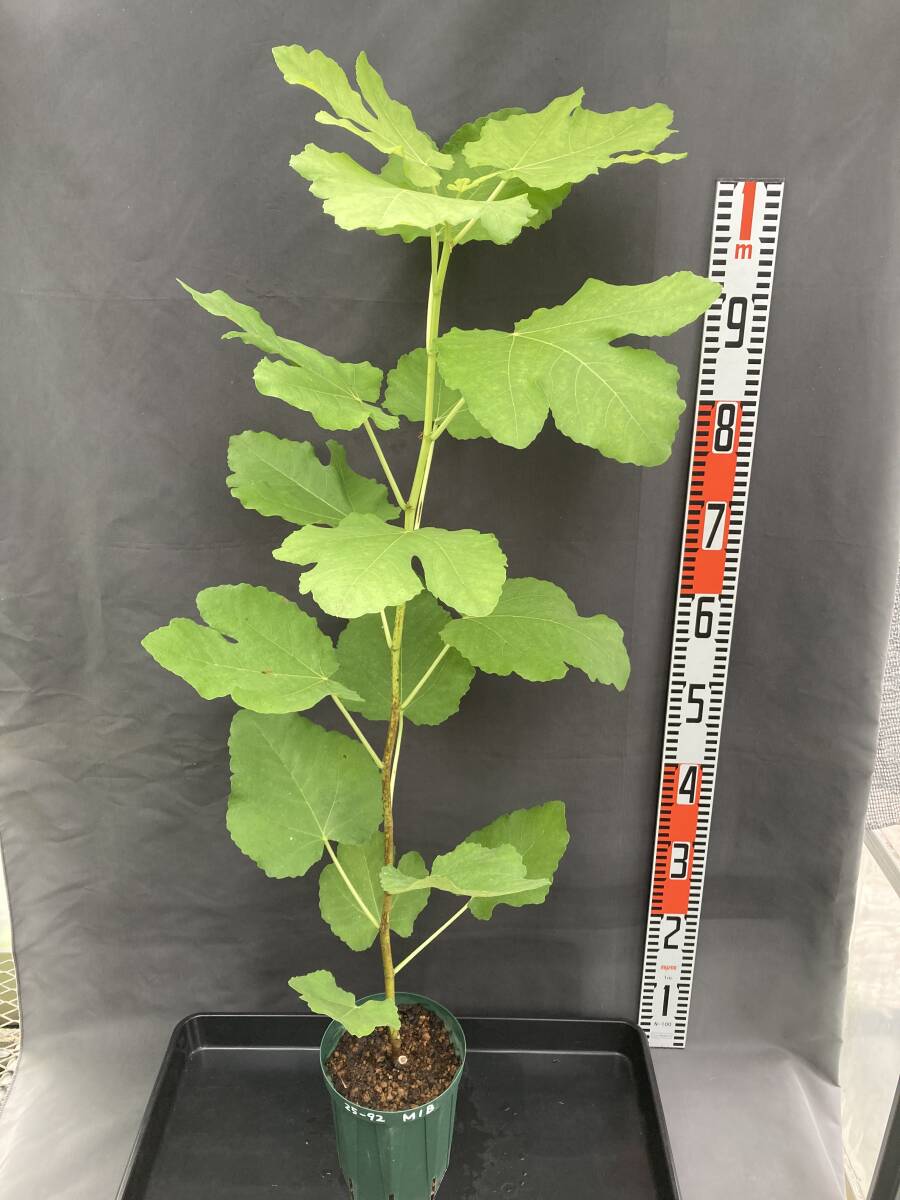 ご覧くださり、ありがとうございます。 Madeira Island Black ( MIB )( マデイラ アイランド ブラック( MIB ) )の苗木です。 今年の4〜5月に親木をカットして挿木しました。 結実実績はまだありません。 果実の画像は参考資料としてご覧ください。 (果実の画像は受粉果かもしれませんので、イチジクコバチがいない日本で収穫した果実は、画像通りにならない可能性があることをあらかじめご了承ください。) ポルトガルのマデイラ島原産です。 海外のイチジク愛好家の方は栽培されている方が多いようです。 秋果専用種で、Black Madeira(ブラック マデイラ)とは別品種です。 実食している穂木入手先の方にお聞きしたところ、味わいが異なるそうです。 地域差があるとは思いますが、海外で実際に栽培されている方によると、MIB は7月下旬から熟し、BMは9上旬から熟したそうで、収穫はBMよりも早いようです。 樹勢はBMよりも強いとのことです。 ベリーの風味はBMほど強くないようですが、その分バランスが取れた美味しい味わいだそうです。 味は人によって好みがありますが、収穫期間・樹勢の強さ・味わいのバランス等から、BMよりも優れた品種として位置付けている方も多いようです。 ただ畑の親木の様子を見ると、樹勢はCraven's Craving の方が断然強いような気がします。 まだ日本ではあまり栽培されていませんが、美味しさも含めて優れた品質から、周知されると人気が出てくるかもしれません。 YouTubeに動画がアップロードされています。 BMやCraven's Cravingとの比較の動画もあります。 興味のある方は是非ご覧になってみてください。 今シーズンは、あと数本出品する予定です。 根がサークリングしにくい15cmロングスリット鉢使用です。 土が乾かないように鉢をビニール袋で包んで鉢押え付きの段ボールに入れてお送りします。 土が乾かないように鉢をビニール袋で包んで鉢押え付きの段ボール箱に入れてお送りします。 農薬・化学肥料等は一切使用せずに育てています。 ご検討の程、よろしくお願い致します。 「Yahoo!オークション」を通してのご縁に心から感謝いたします。 |