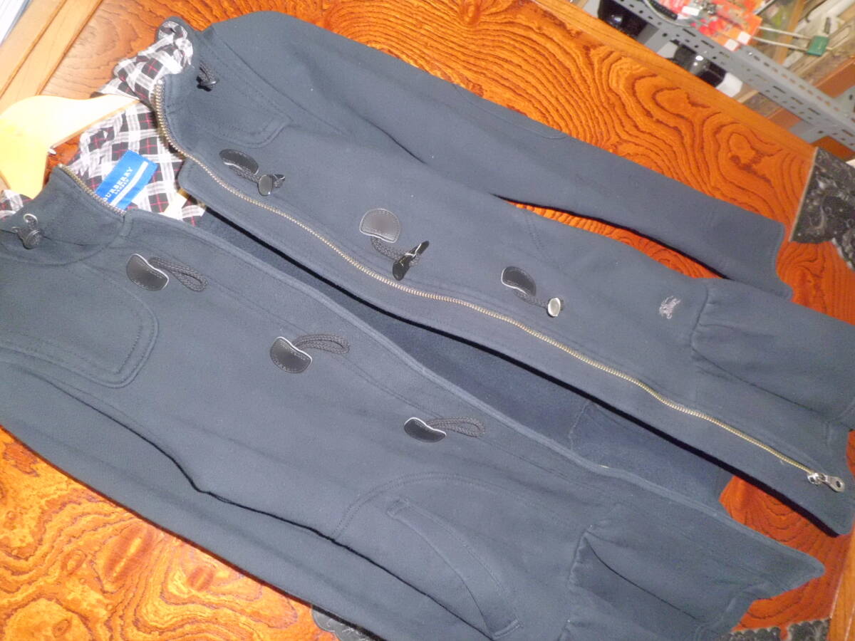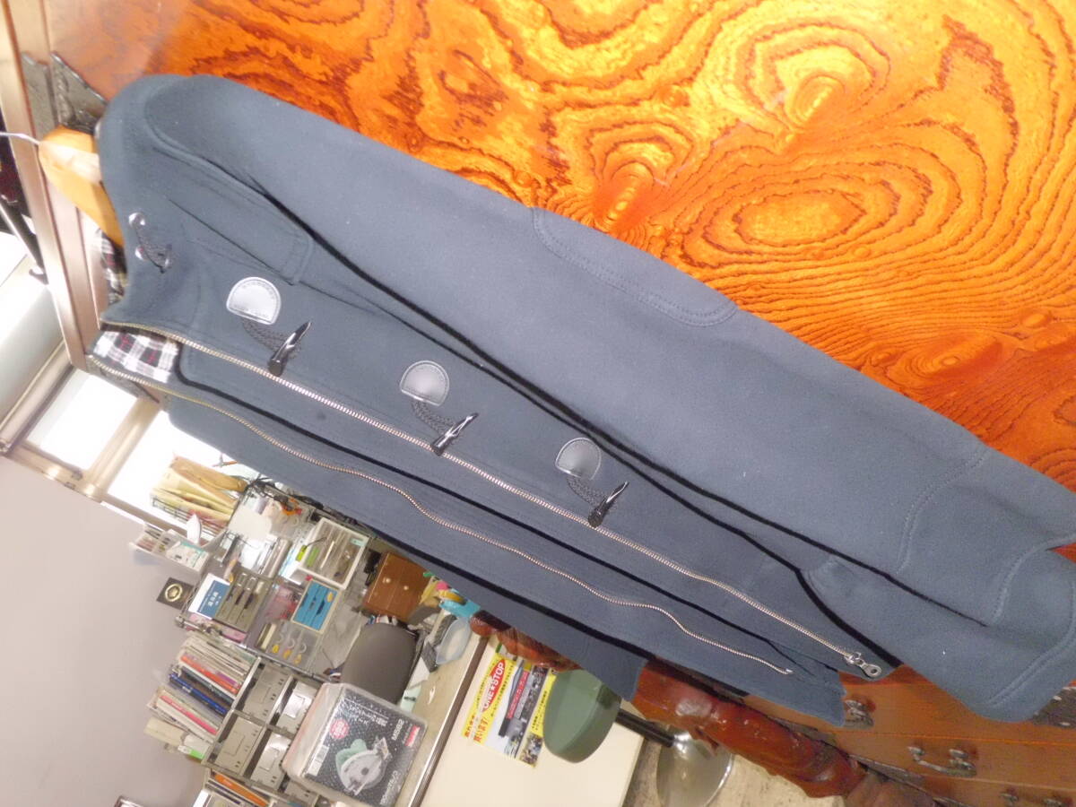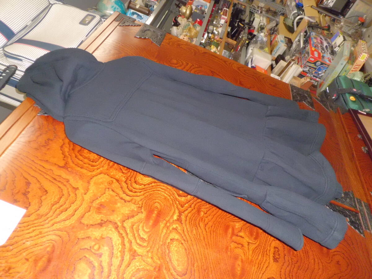 程度の良いお品でございます お色はブルー系で綿&レザー製で下部フリルついてオシャレです サイズ約身丈71cm 肩幅44cm 袖丈38cm 破れ汚れほつれなどは見当たり解れ丁寧に梱包してお送りいたします