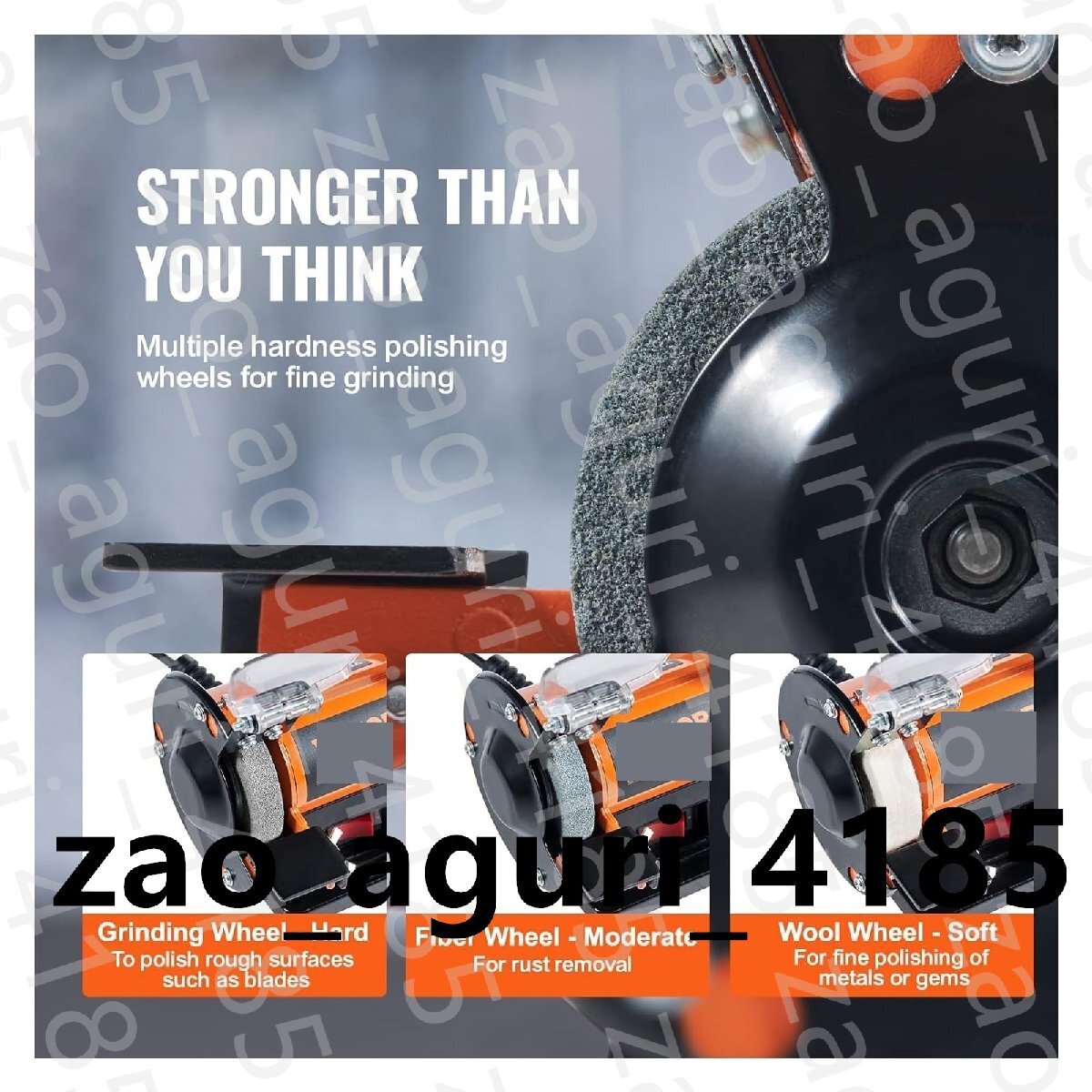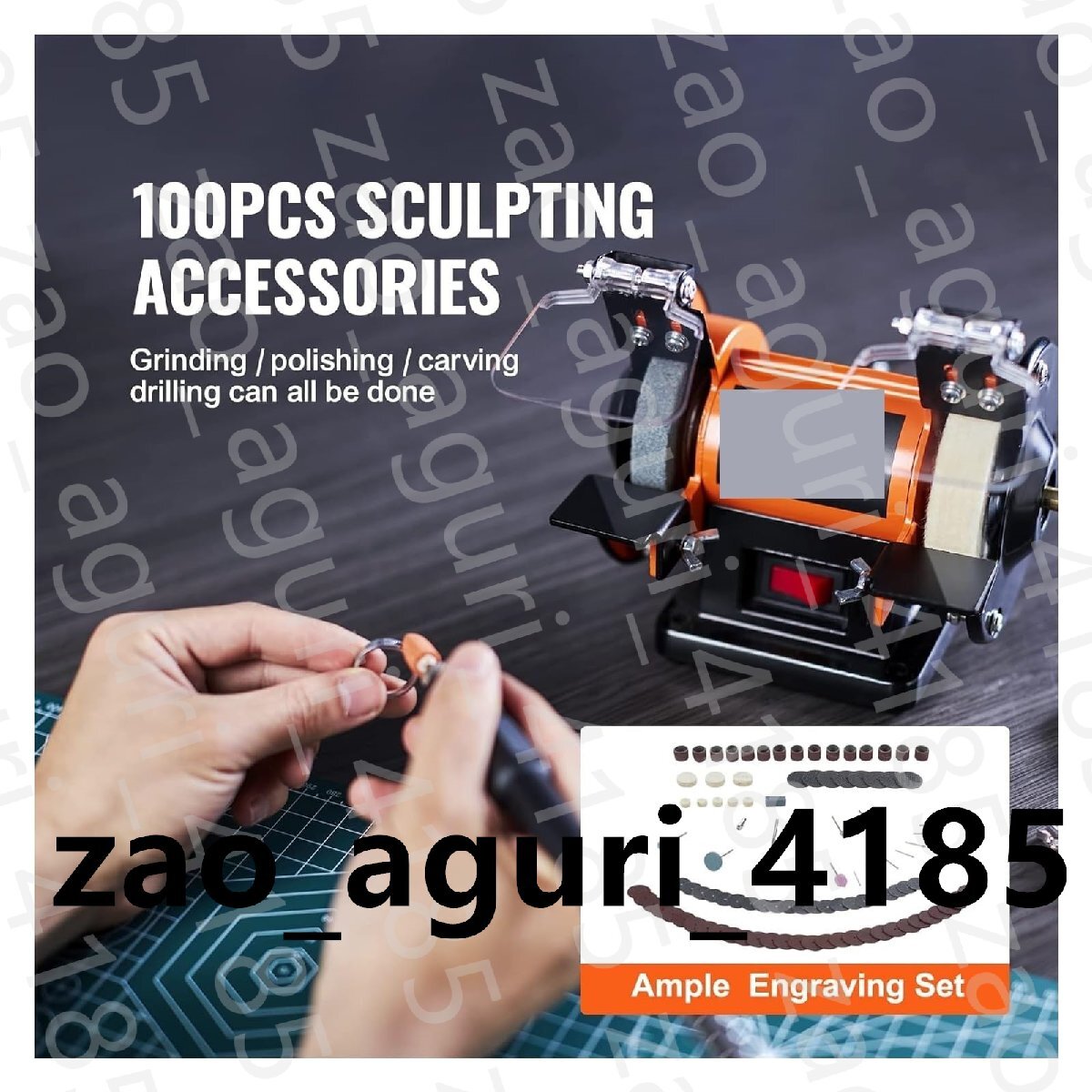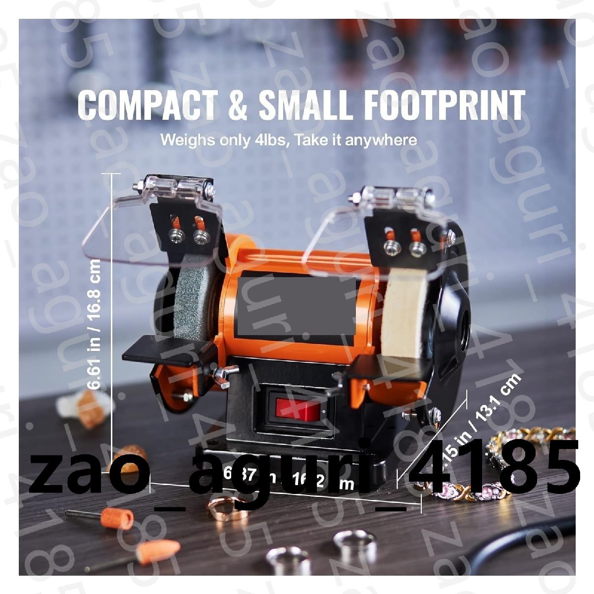 製品説明ベンチトップジュエリーポリッシャー当社のダブルヘッドジュエリー作成ポリッシャーは、より包括的でプロフェッショナルな範囲を実現する 3 つの研磨ホイールを備えています。面倒なメンテナンス手順は必要ありません。原石、金属、木材、プラスチックの研削、研磨、彫刻、打ち抜き、サビ落としなどに適しています。1 ブラシレスモーター2 3 バフホイール3 小型ながらコンパクト1 100+ Pro Tools2 ツールブラケット3 保護カバー1 ビフィングと錆取り2 研磨3 彫刻4 穴あけスタジオや小規模なジュエリーのプロジェクトに最適ジュエリーポリッシャーは、表面研磨、面取り、ドレッシング、錆取り、粗加工、精密研磨、黒点除去、精密研削に使用できます。