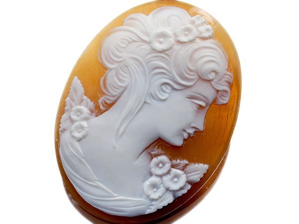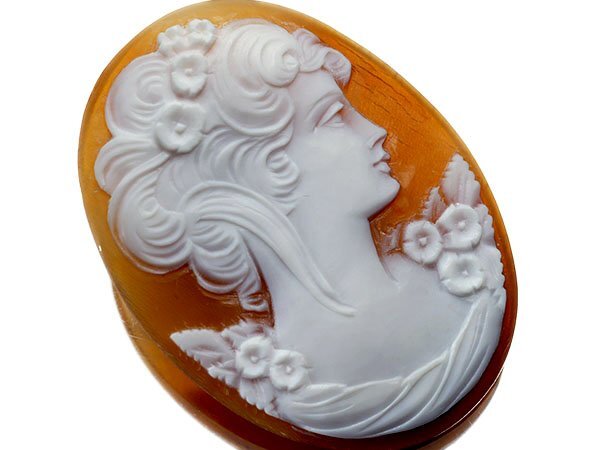 気丈な貴婦人の彫刻が魅力的なシェルカメオルースを激安価格で特別大放出致します!