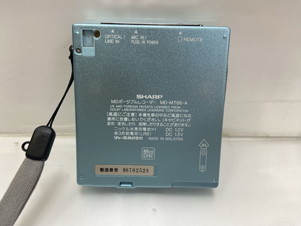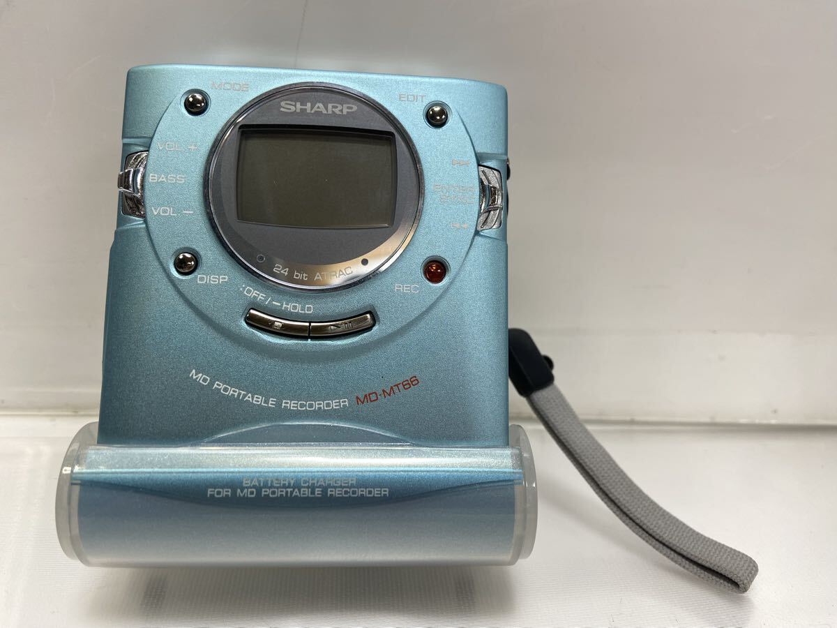 C2GL-4-5092910 動作美品 SHARP/シャープ/MDポータブルレコーダー/MD-MT66-A/充電スタンド/ブルー