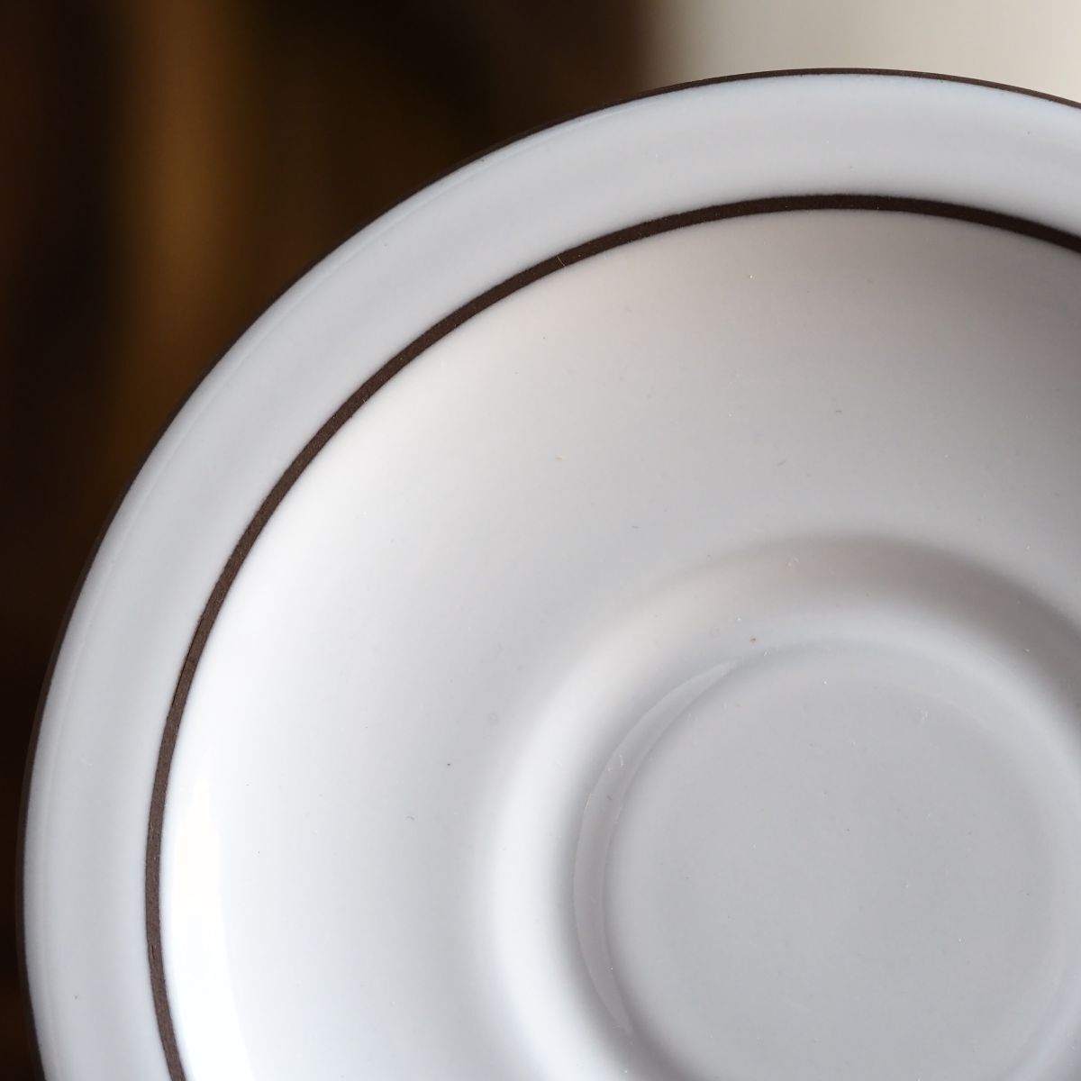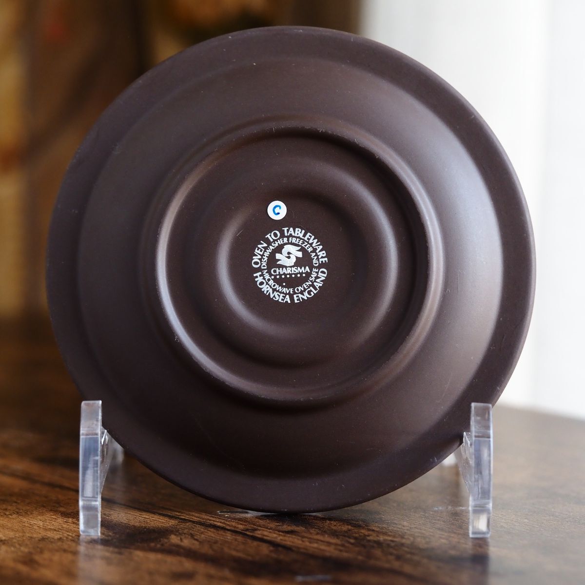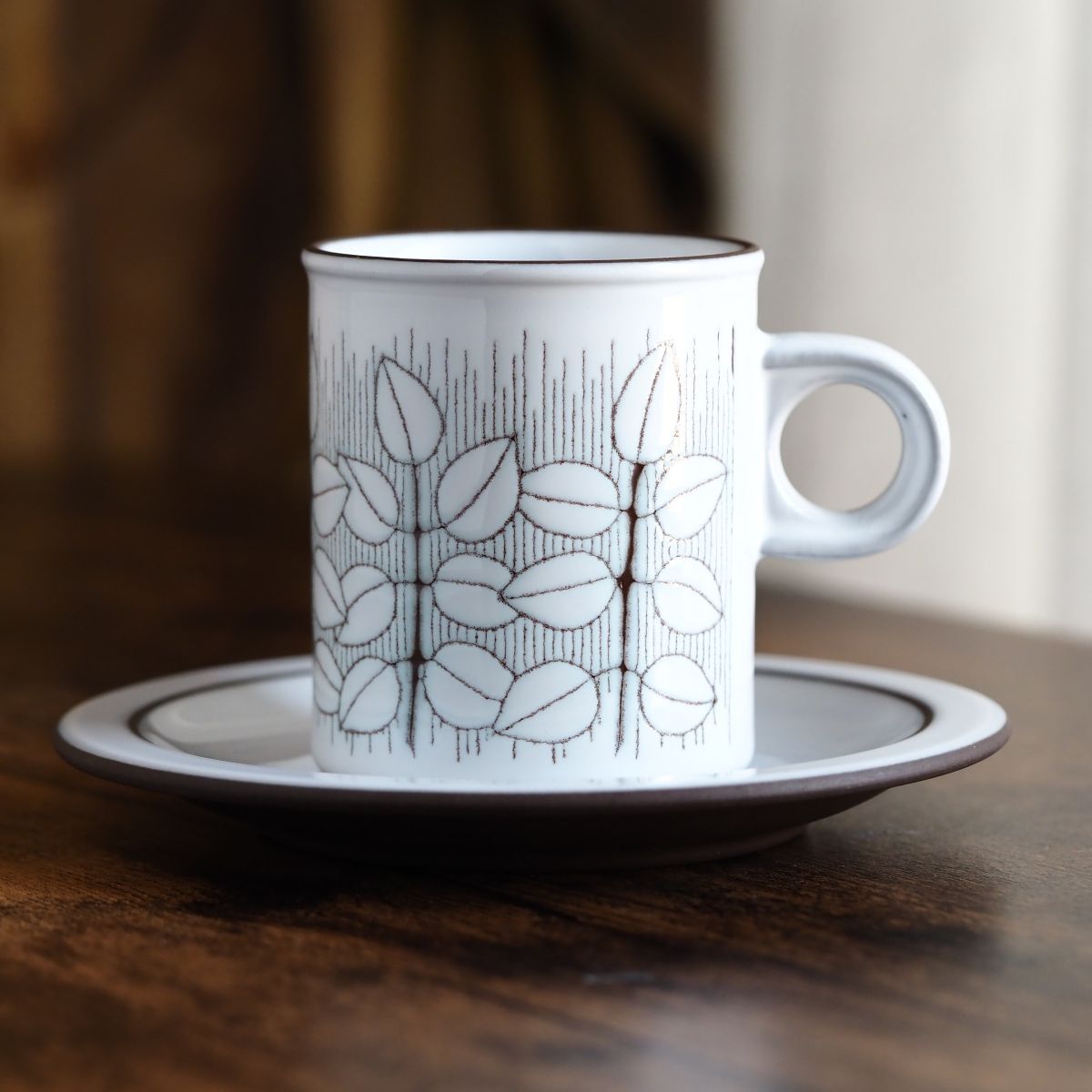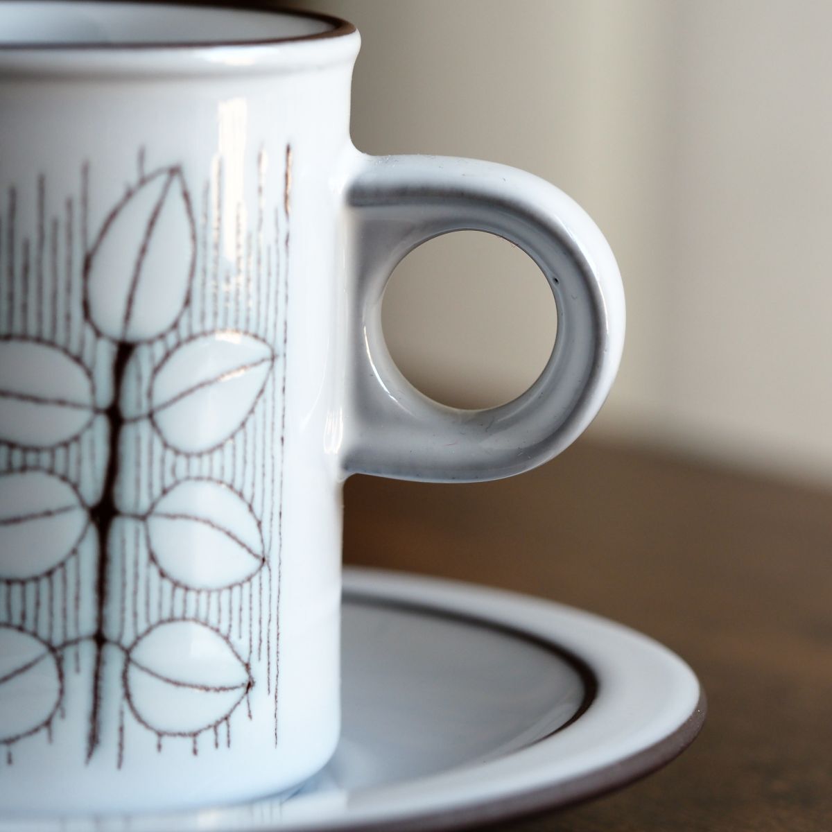 ご覧頂きありがとうございます。 こちらはイギリスの陶磁器メーカー ホーンジー社で制作された「Charisma/カリスマ」シリーズのカップ&ソーサーになります。 1970〜72年の短い間でしか生産されたなかった希少なモデルになります。モノトーンで純白の釉薬にホーンジーの製品によく見られる凹凸のある描き方で上に伸びる葉と上下に描かれた細いラインがアクセントとなって可愛らしいデザインです。コンディションも良くオススメです。 【寸 法】 高さ:76mm 径:62mm (バックスタンプあり) |