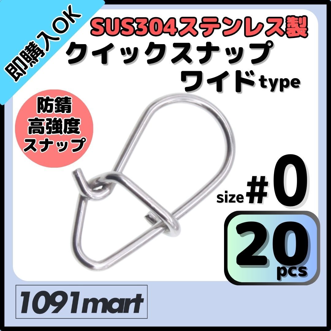 SUS304 ステンレス製 強力クイックスナップ ワイドタイプ #0 20個セット ルアー用 防錆 スナップ【ミニレター】