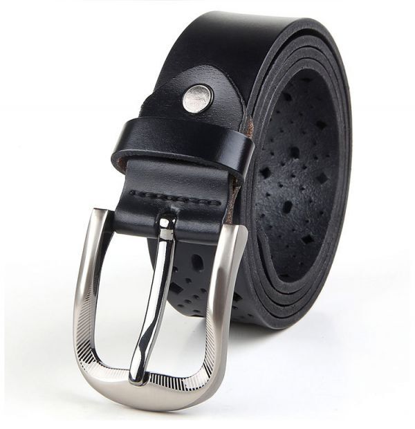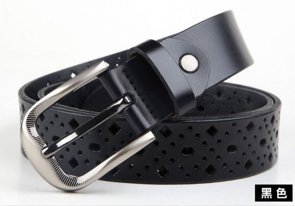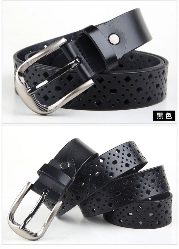【新品・未使用】ベルト PU レザー オールラウンド 水玉 穴あき バックル ブラック 黒 ドット