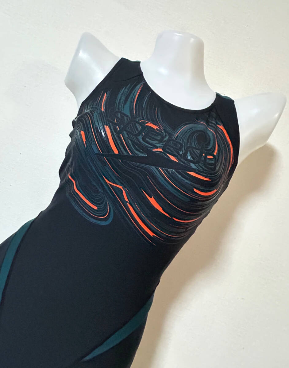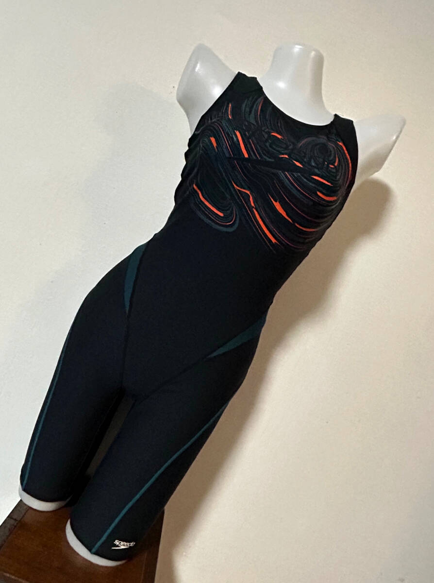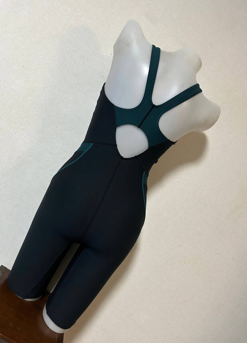 70★SPEEDO*スピード*黒にサイド深緑ライン*スーツタイプ*ピタピタ競泳水着*Lサイズ*女子用★
