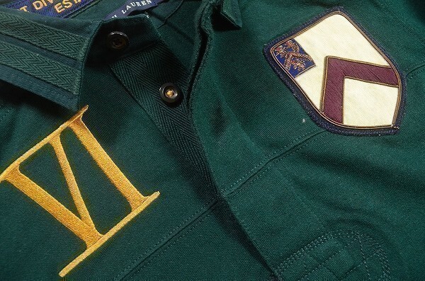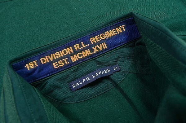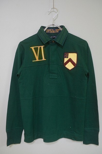 A2914/美品 春夏 薄手 RALPH LAUREN ラルフローレン コットン シルク カシミヤ ワッペン 刺繍 長袖シャツ M 緑/レディース Tシャツ