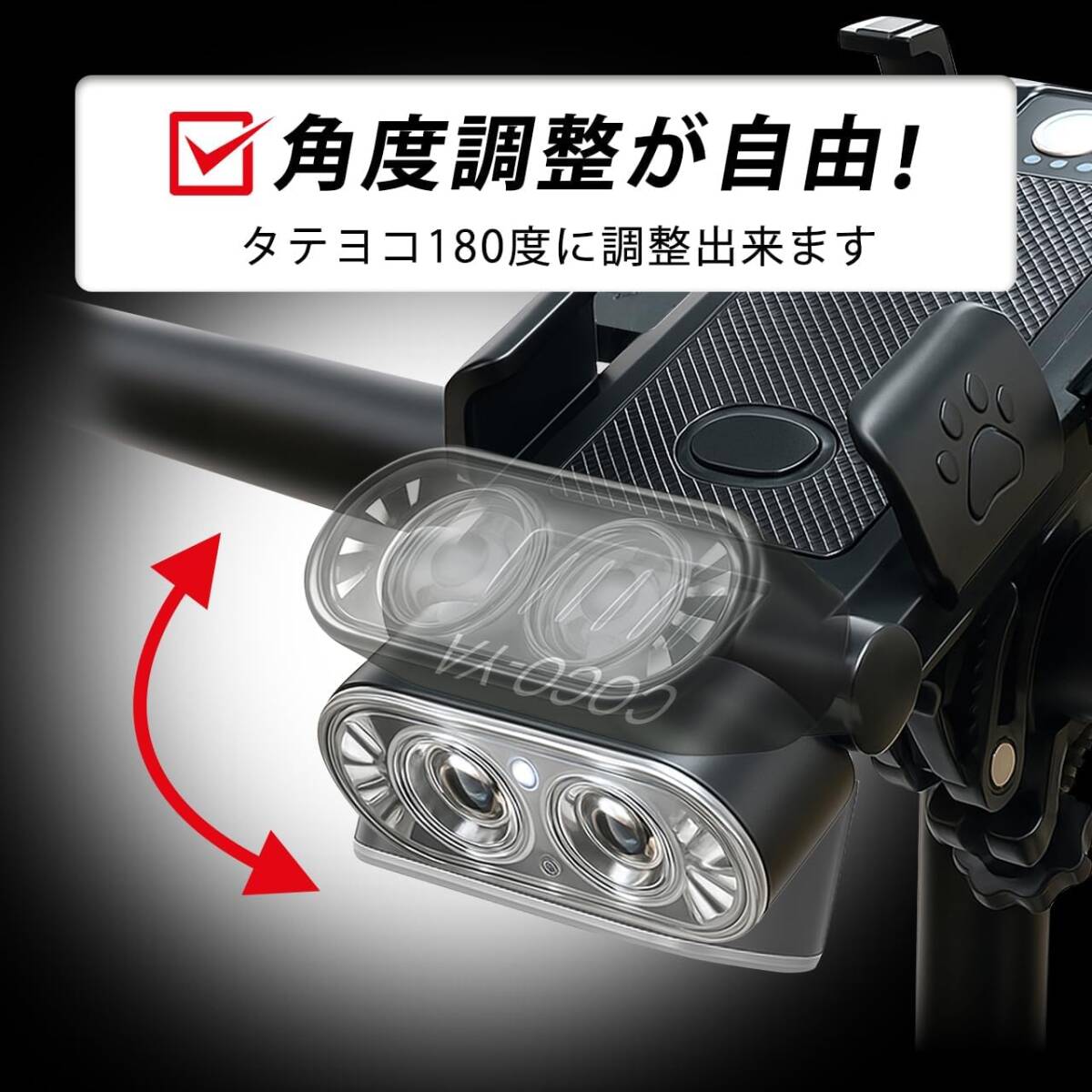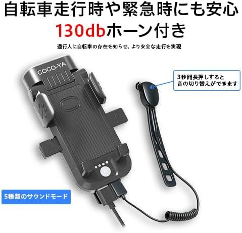 COCO-YA オリジナル 自転車ライト 日本のブランド 130デシベルホーン付き スマートフォン搭載可 通勤 通学 街乗り 大容量 3600mAh