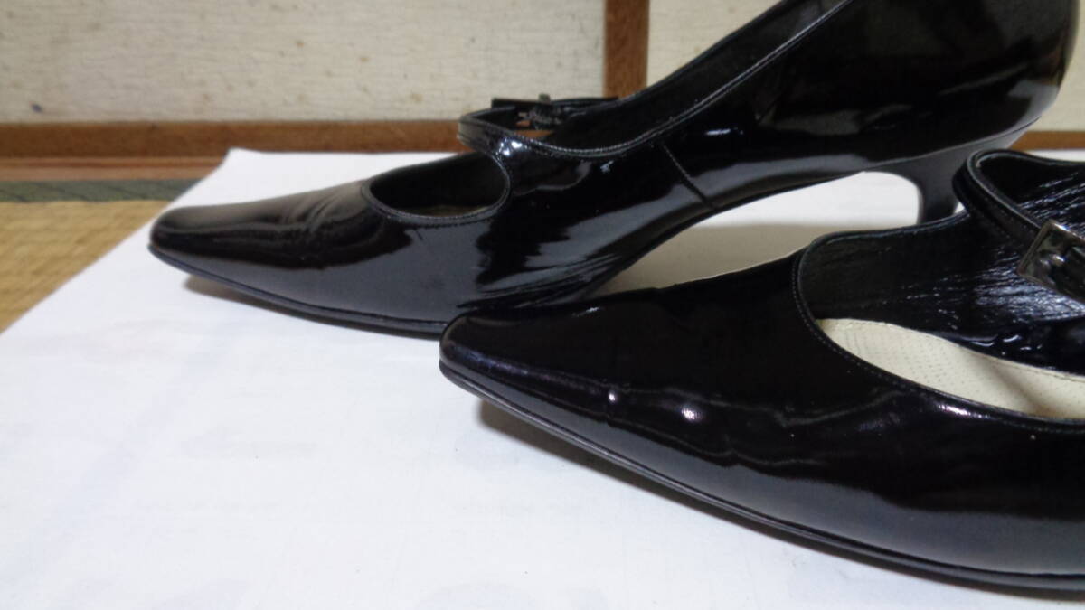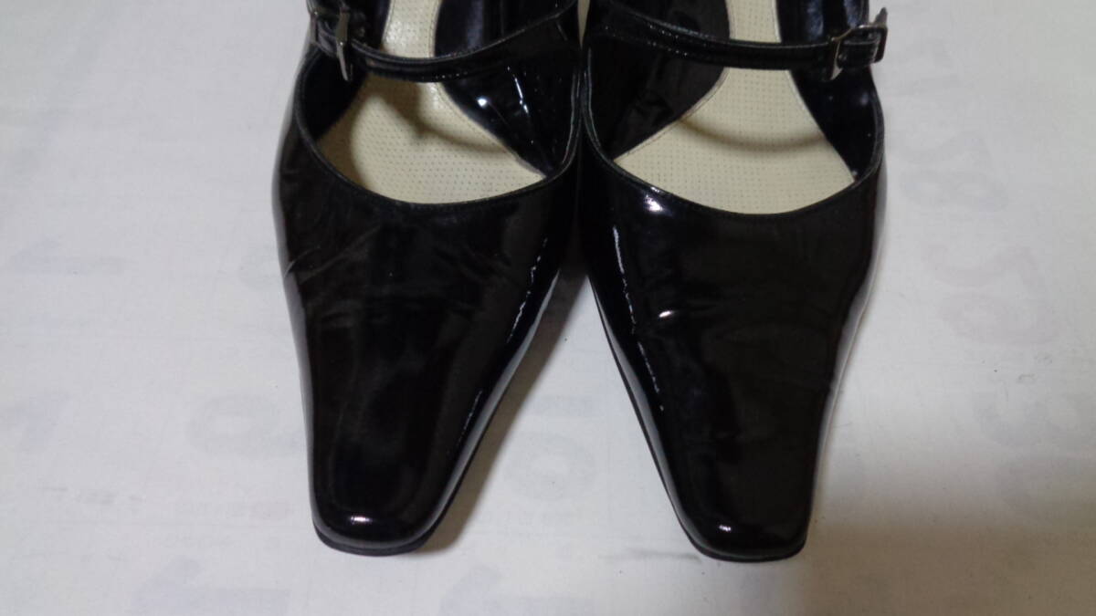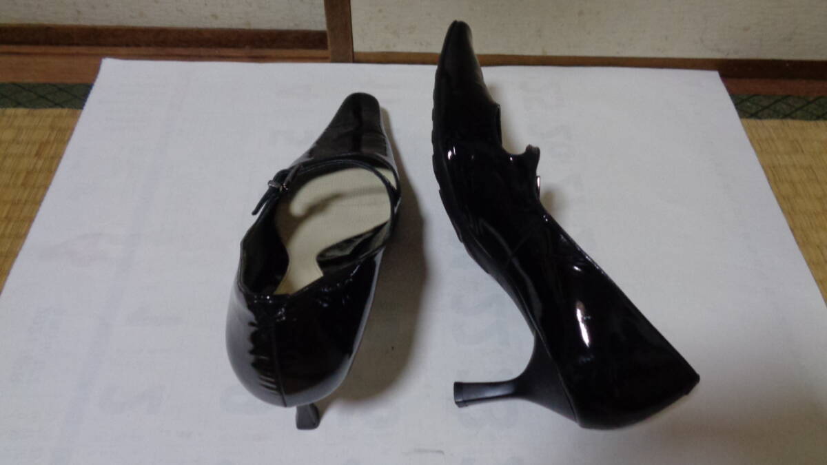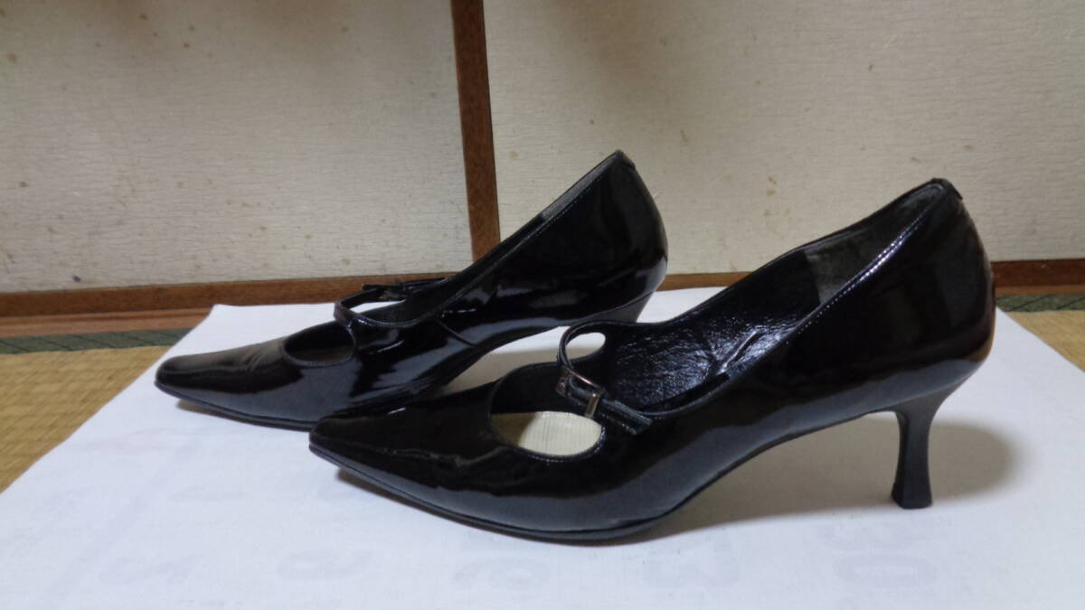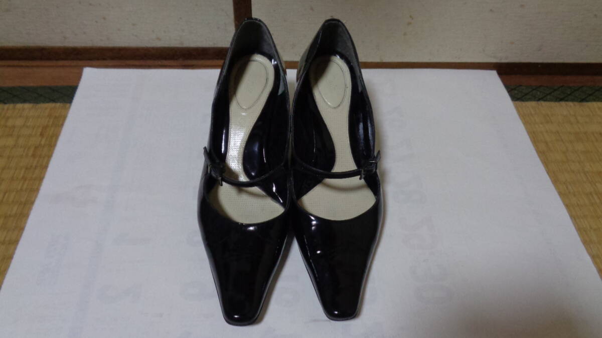 送料込み Quiz 本革 黒パンプス 日本製 24