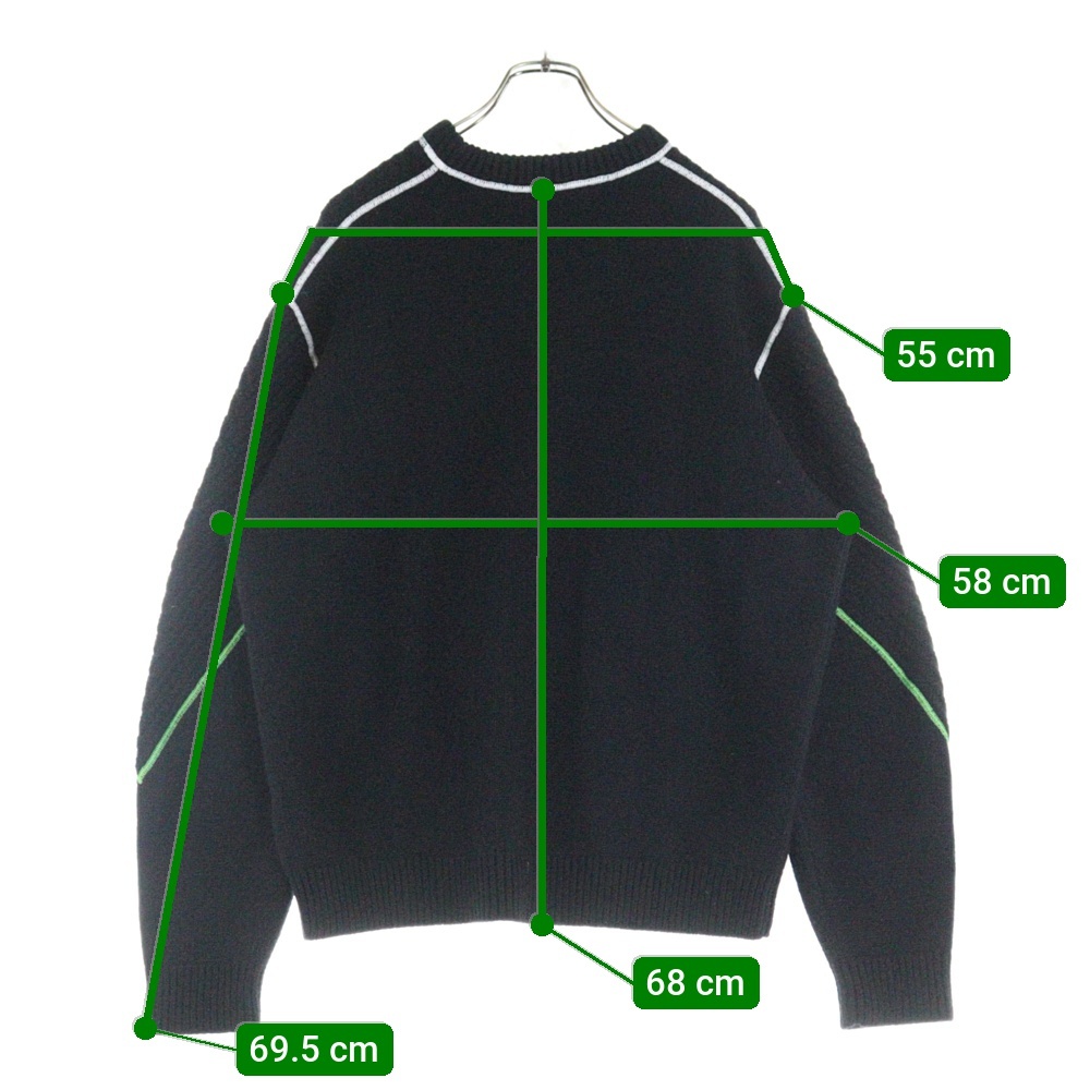 品名ラインデザイン オーバーサイズ クルーネック ニットセーター ブラック 730620 V2MB0