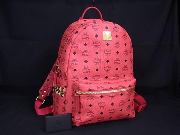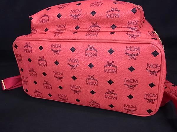 1円 ■極美品■ MCM エムシーエム モノグラム ヴィセトス柄 レザー リュックサック バックパック デイパック レディース レッド系 FL6566