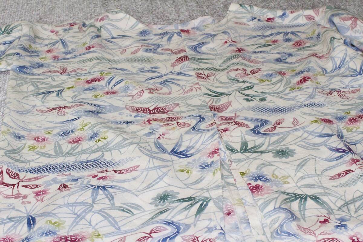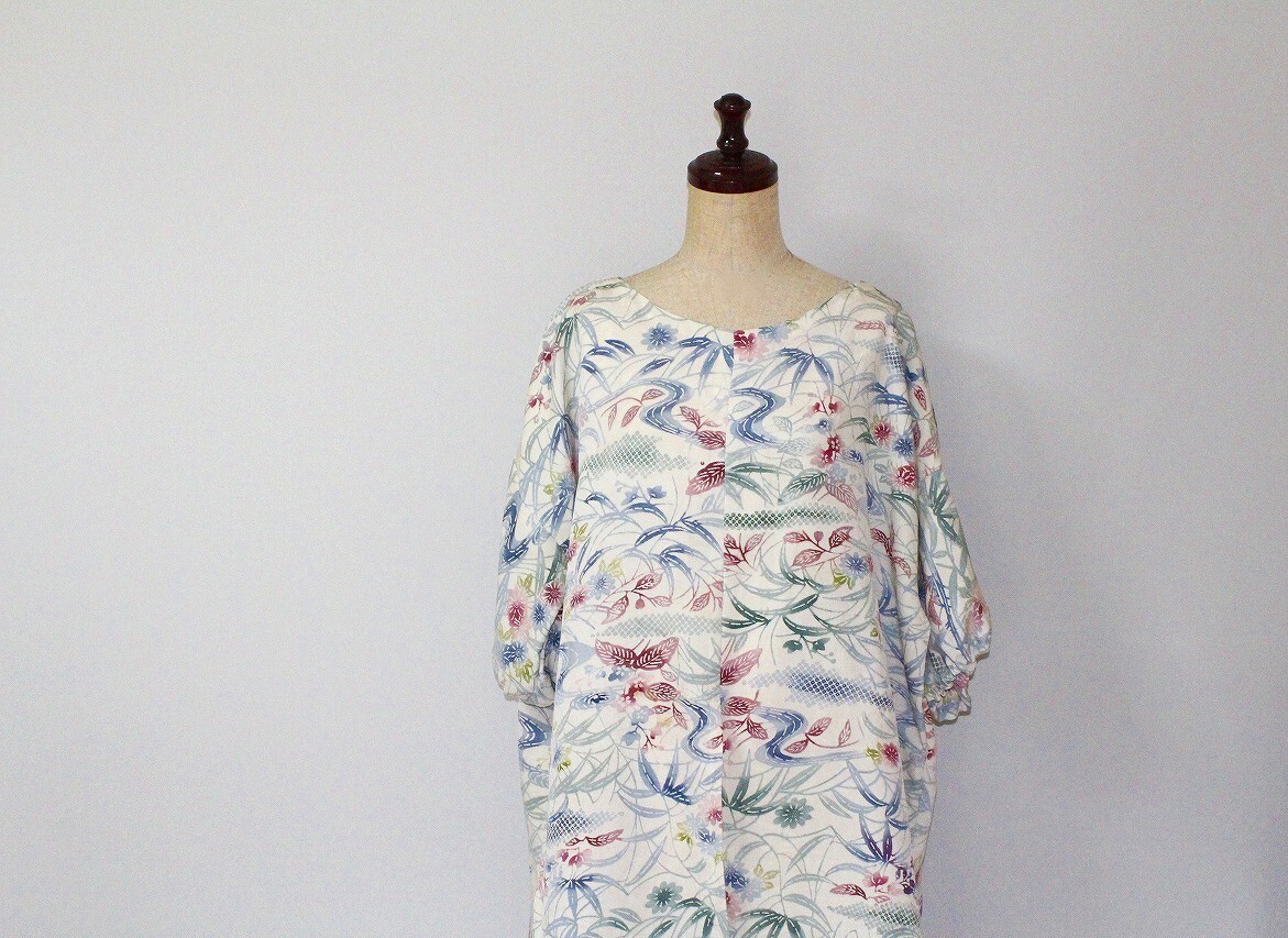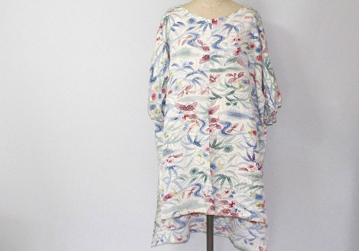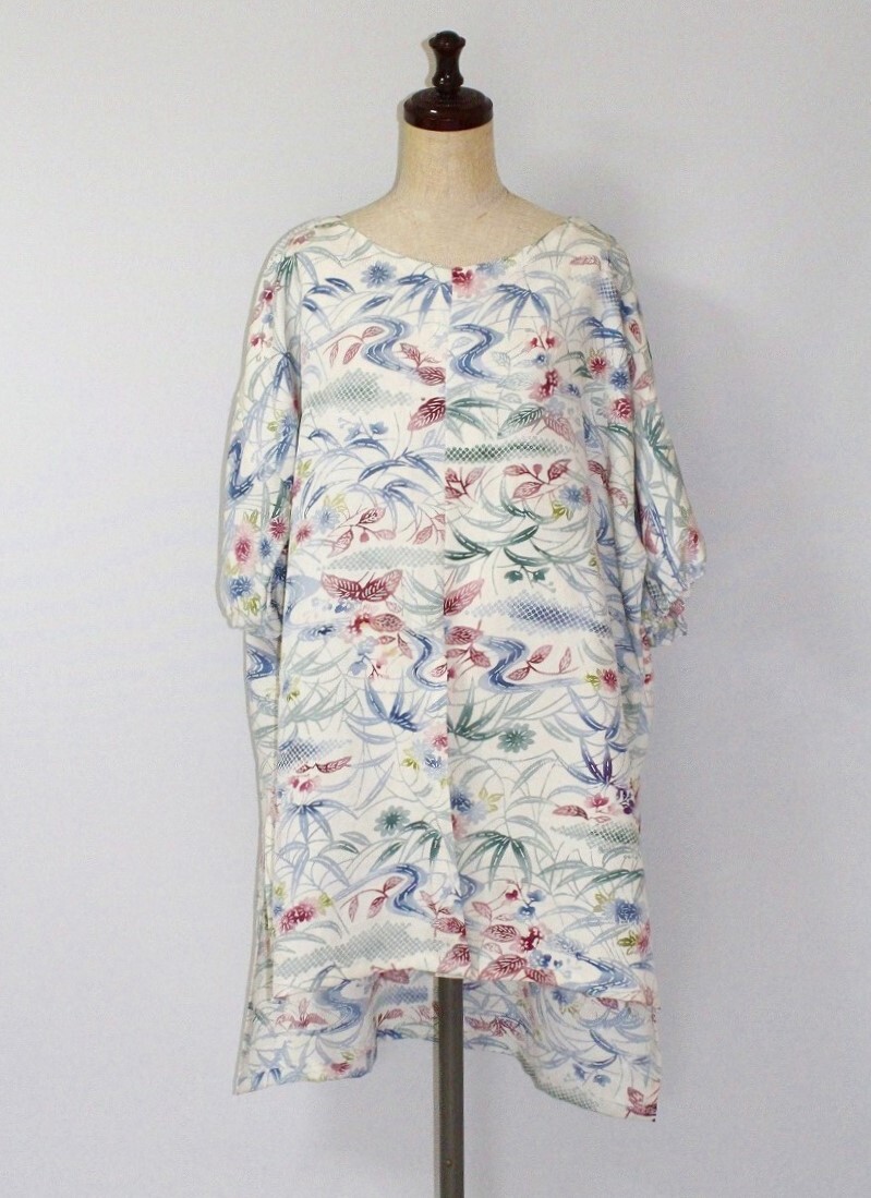 生地はちりめんかと思われます。 サイズはフリーサイズで肩下がりデザインで袖繰りや脇幅はゆったりとしています。 体系カバーでゆるふわっと着こなしていただけます。 エレガントに大人っぽいスタイルです。 大きなシミ汚れはありませんが、所々うす茶色のシミがあります。 縫製は工業用ミシン、工業用ロックミシン工業用の糸を使っております。 丈直しの受付はしておりません。ロックミシンで端処理しております。 【サイズ】 肩幅66cm 袖丈18cm 脇繰り幅平置き19cm 脇下幅平置き66cm 着丈前77cm 着丈後88cm 若干誤差がありますご了承ください ★★★最後までお読みいただきお取引ください★★★ 本品は中古着物等を解き、洋服にリメイクしたものです。 経年による生地の傷み色あせ色むら解れ汚れ等がある場合がございます。 着物を解いた際に出来る、縫い目あと、針穴、折り目すじ、取り切れていない糸くずが付着している場合がございます。 補修してある部分は避けて裁断していますが、補修跡があるものもあります。 古布の特性をご理解ください。 気をつけてみているつもりですが、着物により、解きにくく、ひとめひとめ切って布に戻しているものもあります。 取り切れない糸くずなどが付いたままになっているものもあります。 当方、生地について詳しくないため、購入時店舗の方から聴取したもので、違っている可能性がありますが、画像等でご確認いただきご入札ください。 ご自宅で洗濯される際は色落ちや縮みなど不具合がでる可能性がありますご理解ください。 ノークレーム、ノーリターンでお願いします。 完璧な商品をお求めの方、神経質な方の入札はお断りいたします。既製品ではありません。趣味の範囲であることをご理解頂きご入札ください。 気持ちよくお取引していただけるよう努力しております。商品の確認はしているつもりですが、見落としがある可能性があります。ご理解頂きますようお願いいたします。 こちらも誠意をもって対応しておりますので、悪いと評価された場合 いかなる場合もこちからも悪い評価をしますのでご了承ください。 基本的に評価は、こちらかはいたしませんので、必要な方はお申し出ください。 委託品、頂き物等もあり詳しくご説明できない場合がございます。 保管時に臭い、しわ等が出来ているものもあります。 新品と書いていない限り中古品であることをご理解頂きご入札ください。 ★★★最後に★★★ 取引メッセージは必要最小限で返信しております。 ご理解ください。 お申し出がない限り、宅急便は置き配可にして発送いたします。 時間指定される場合は、ご自宅にいらっしゃる時間をご指定くださいね! |