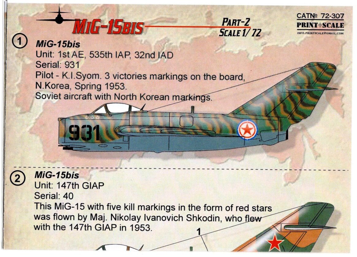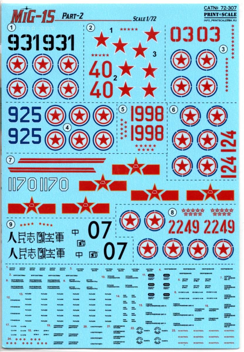 1/72 PRINTSCALE DECALS プリントスケールデカール 72-307  Mig-15bis