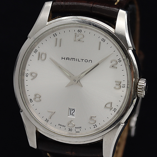 1円 箱付 稼働 ハミルトン ジャズマスター H385111 QZ シルバー文字盤 メンズ腕時計 0034100 9RET SMZ