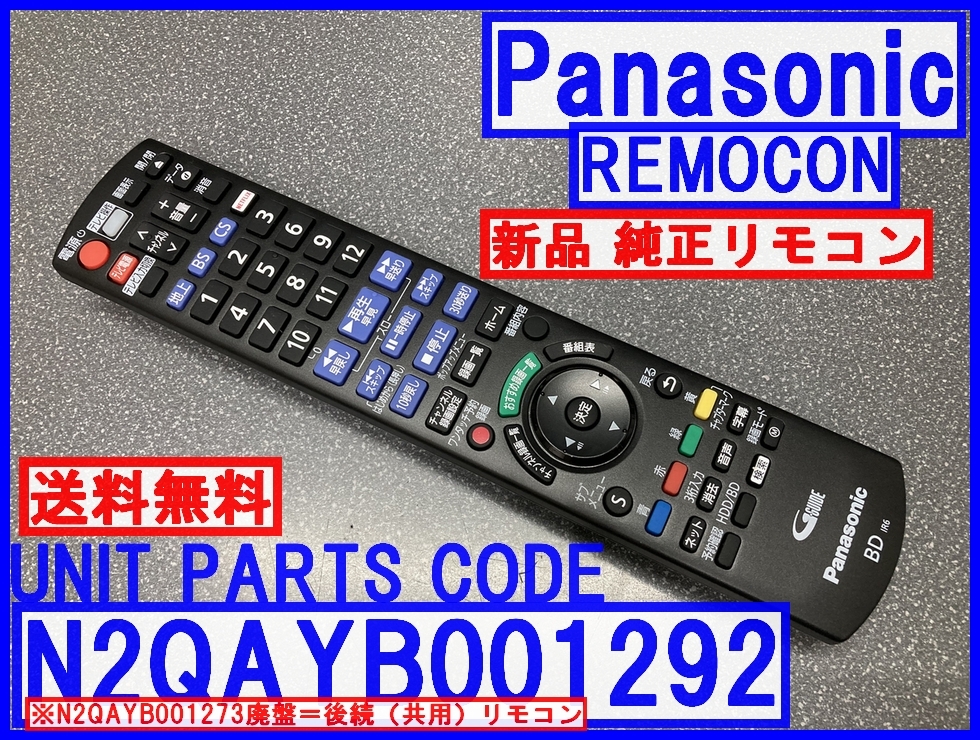 新品 N2QAYB001292 純正ディーガリモコン(※N2QAYB001273廃盤=共用リモコン)DMR-2X302 DMR-2X202 DMR-2X602用 即決=送料込(迅速発送)