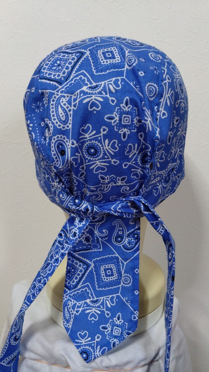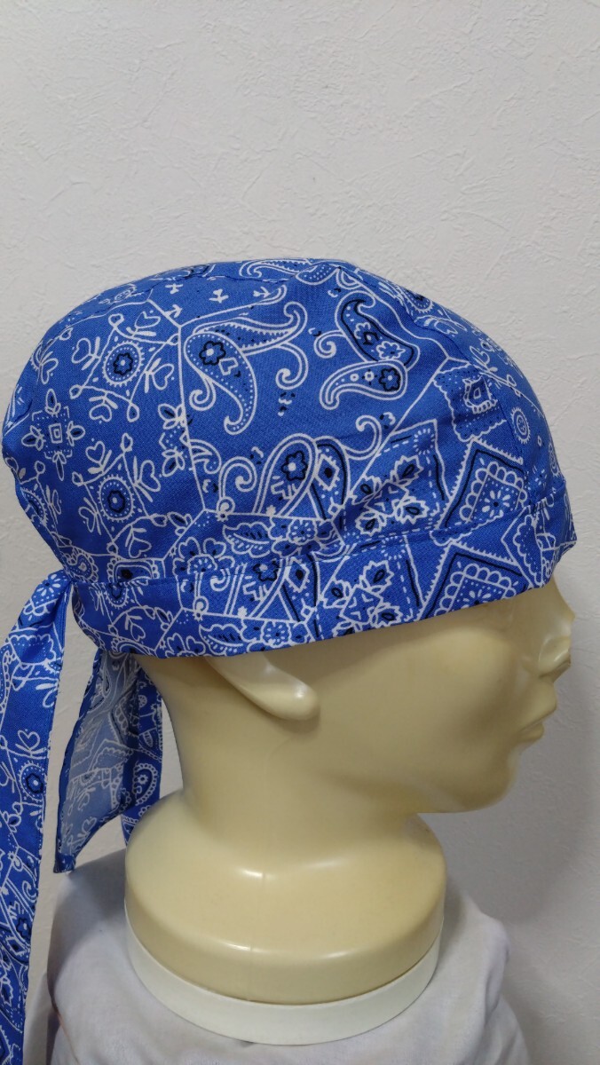 ★バンダナキャップ★ハンドメイド ペイズリー バンダナ 水色