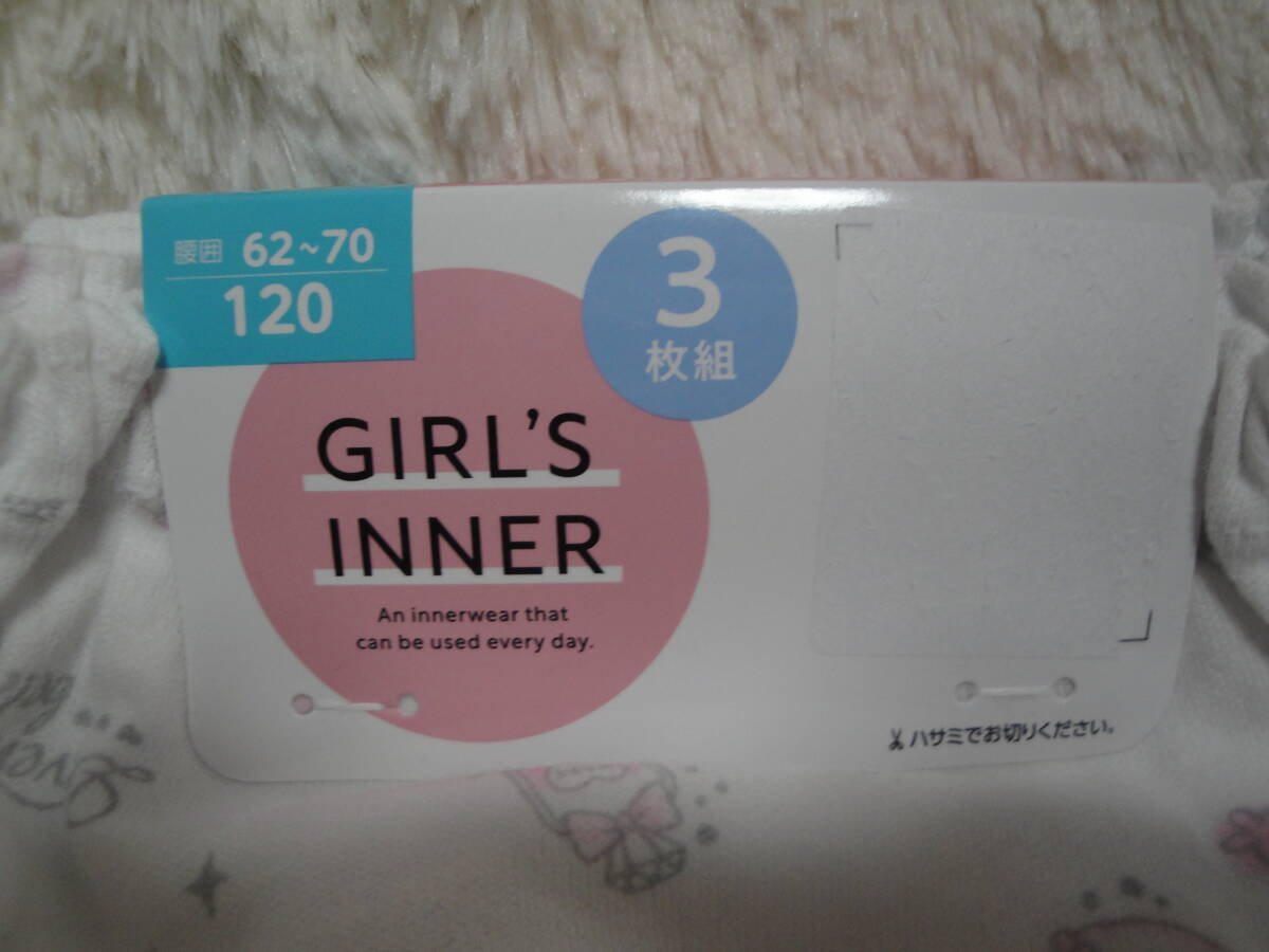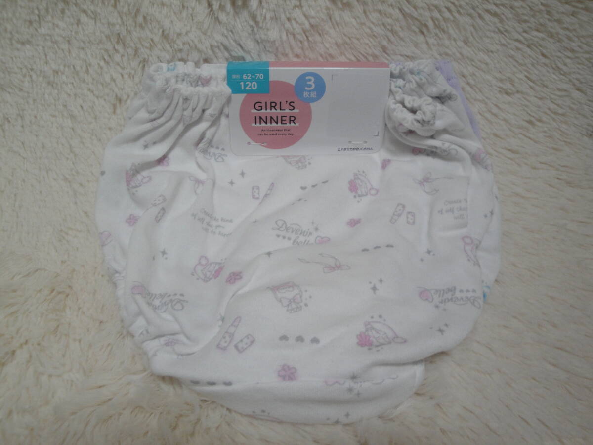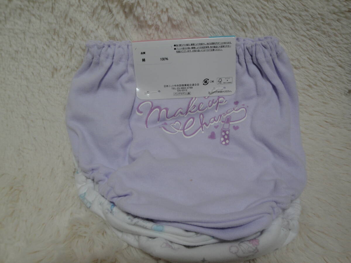 S新品120-710 3枚組 ジュニアショーツ 白ピンク総柄 + 白ブルー総柄 + 薄紫バックプリント 3枚組