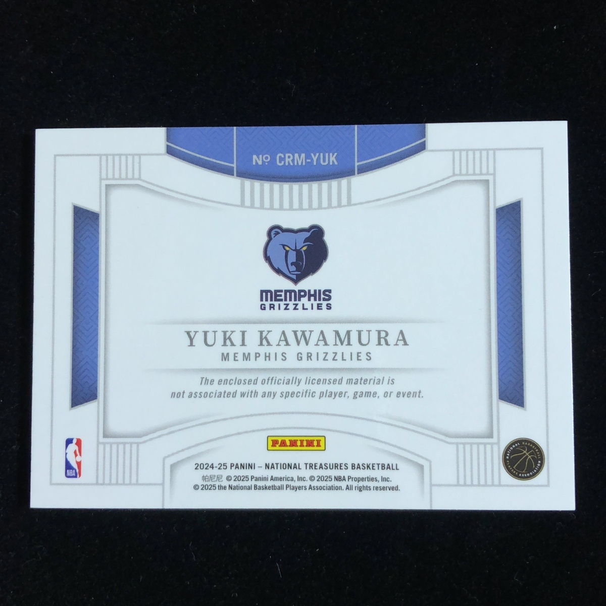 河村勇輝 Kawamura Yuki Panini National Treasures Colossal 2024-2025 /99 RC Rookie Jersey ジャージ グリズリーズ Grizzlies