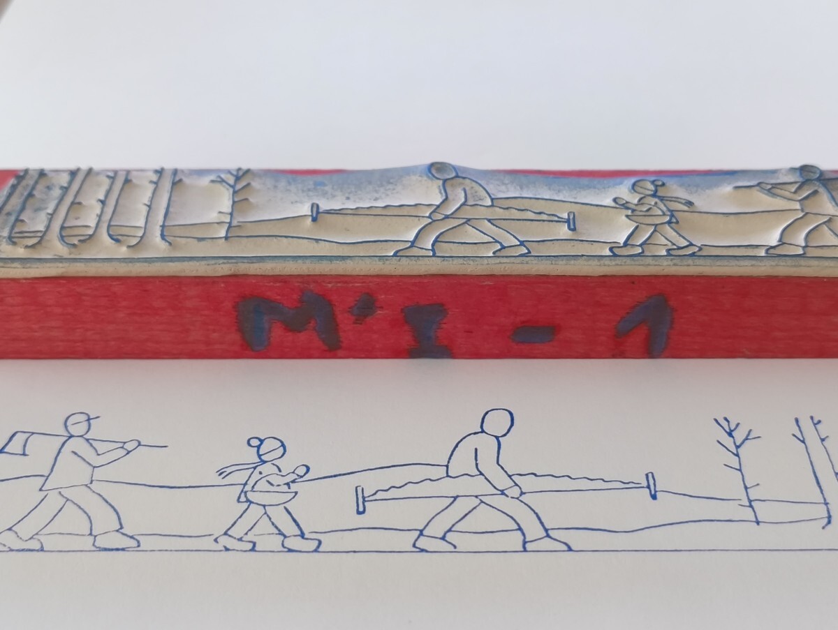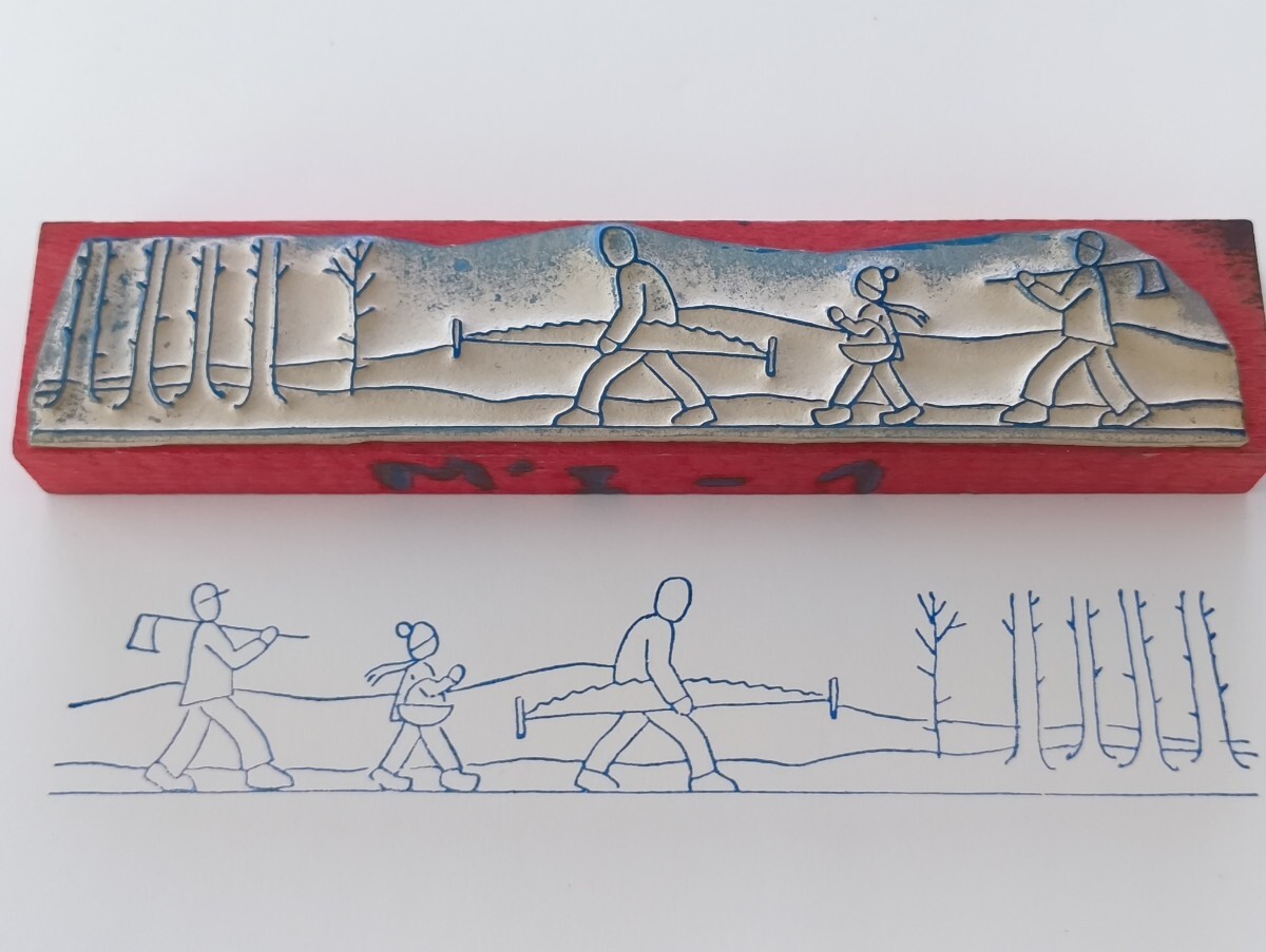 横長 親子 丸太切り 両手挽鋸 木 伐採 ノコギリ 工具 林業 フランス アンティーク スタンプ ヴィンテージ ハンコ イラスト 素材 森 仏 雑貨