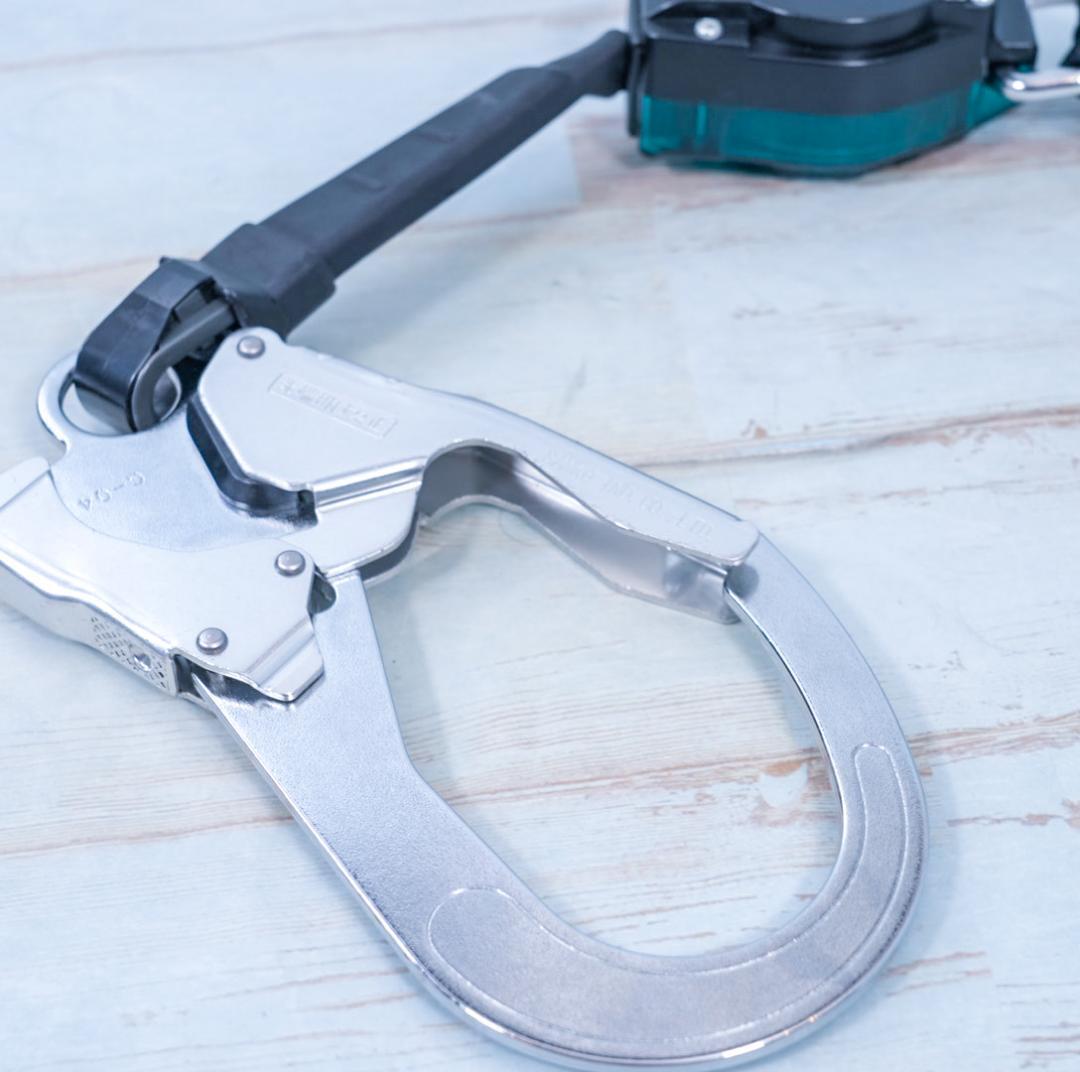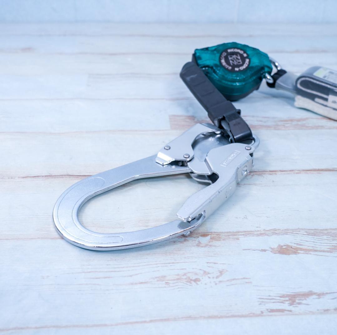 ハーネス用ロック機構付きモデルで、建設・高所作業の墜落制止用器具として幅広く使用できます。
