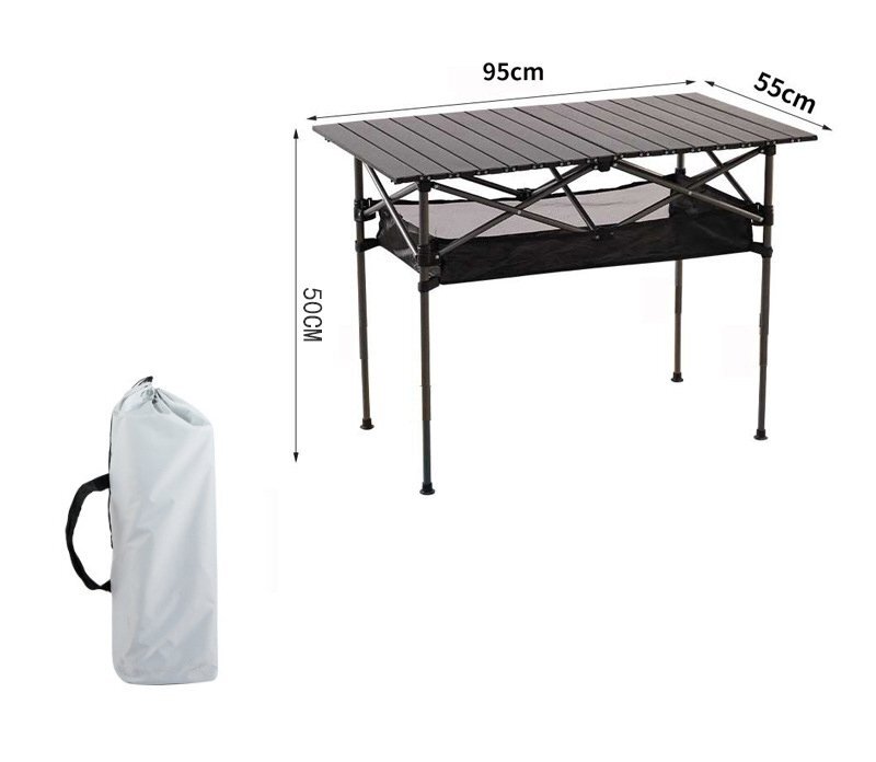 厚めのアルミ合金天板を採用しており、約50kgの耐荷重が実現しています。テーブルのフレームはX型ブラケットサポートを採用し、展開する時に形成された三角構造で安定性が抜群です!