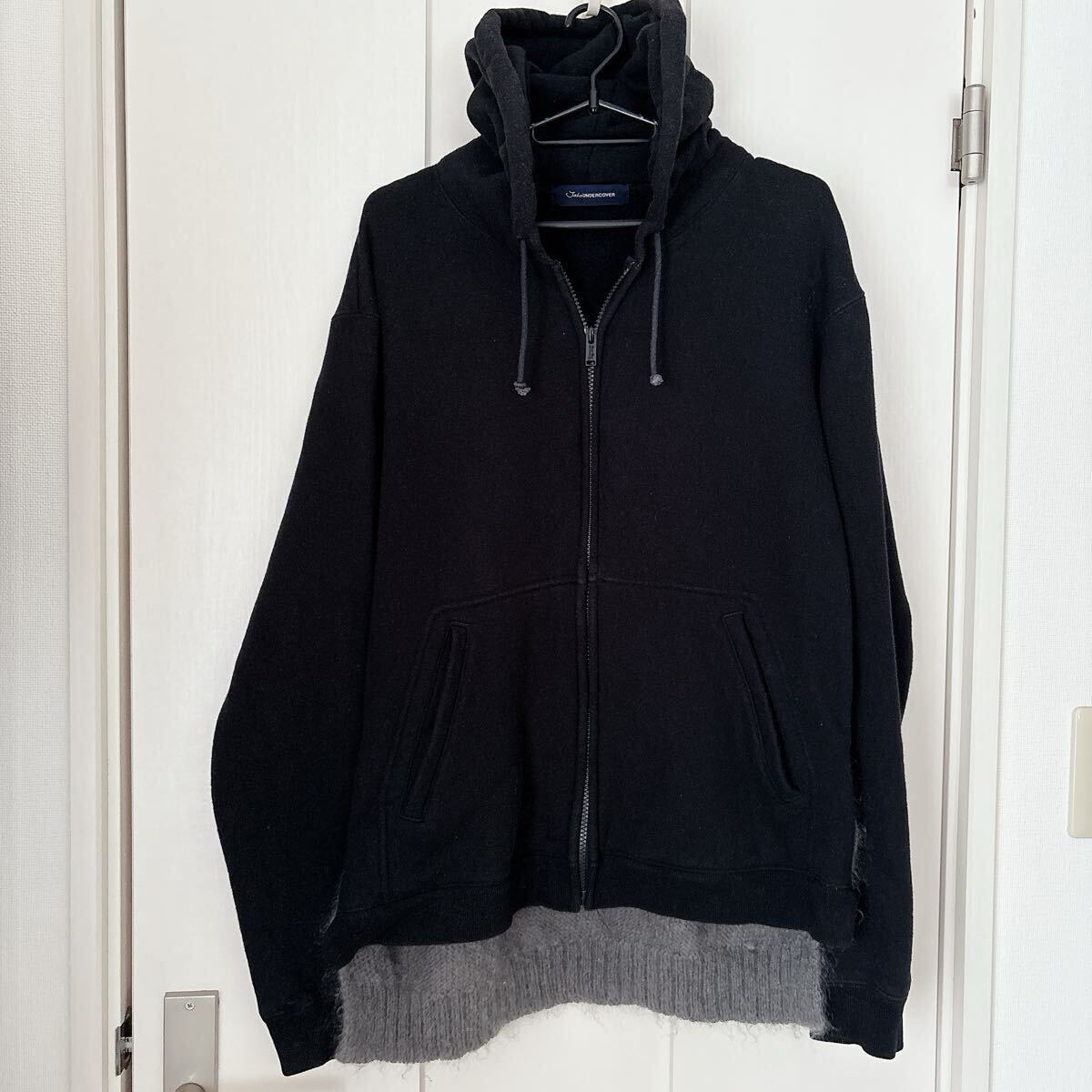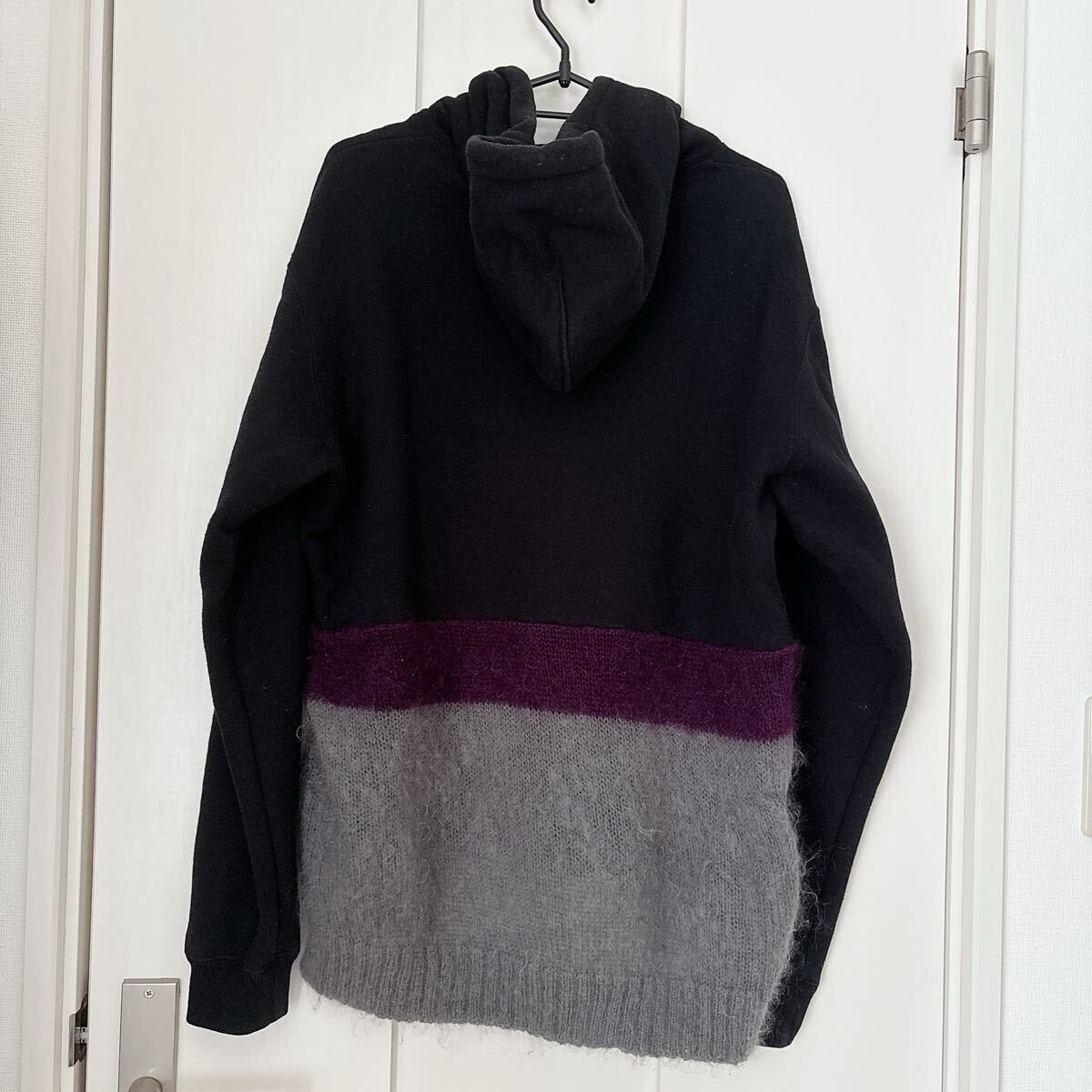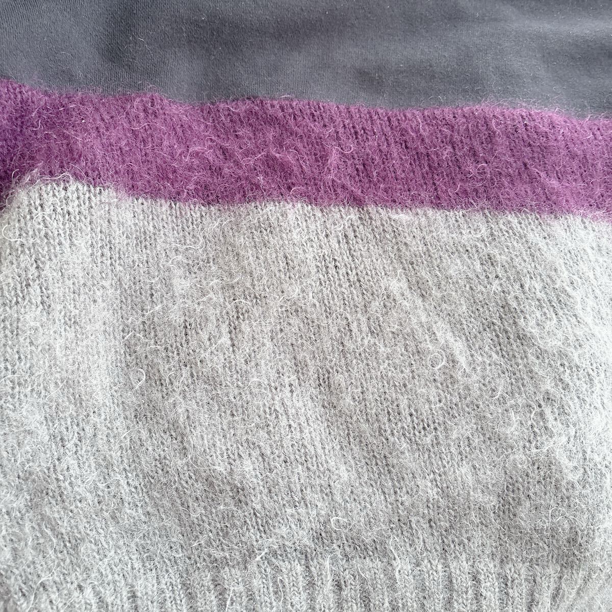色はブラック系で、紫とグレー部分の裾はニットです。